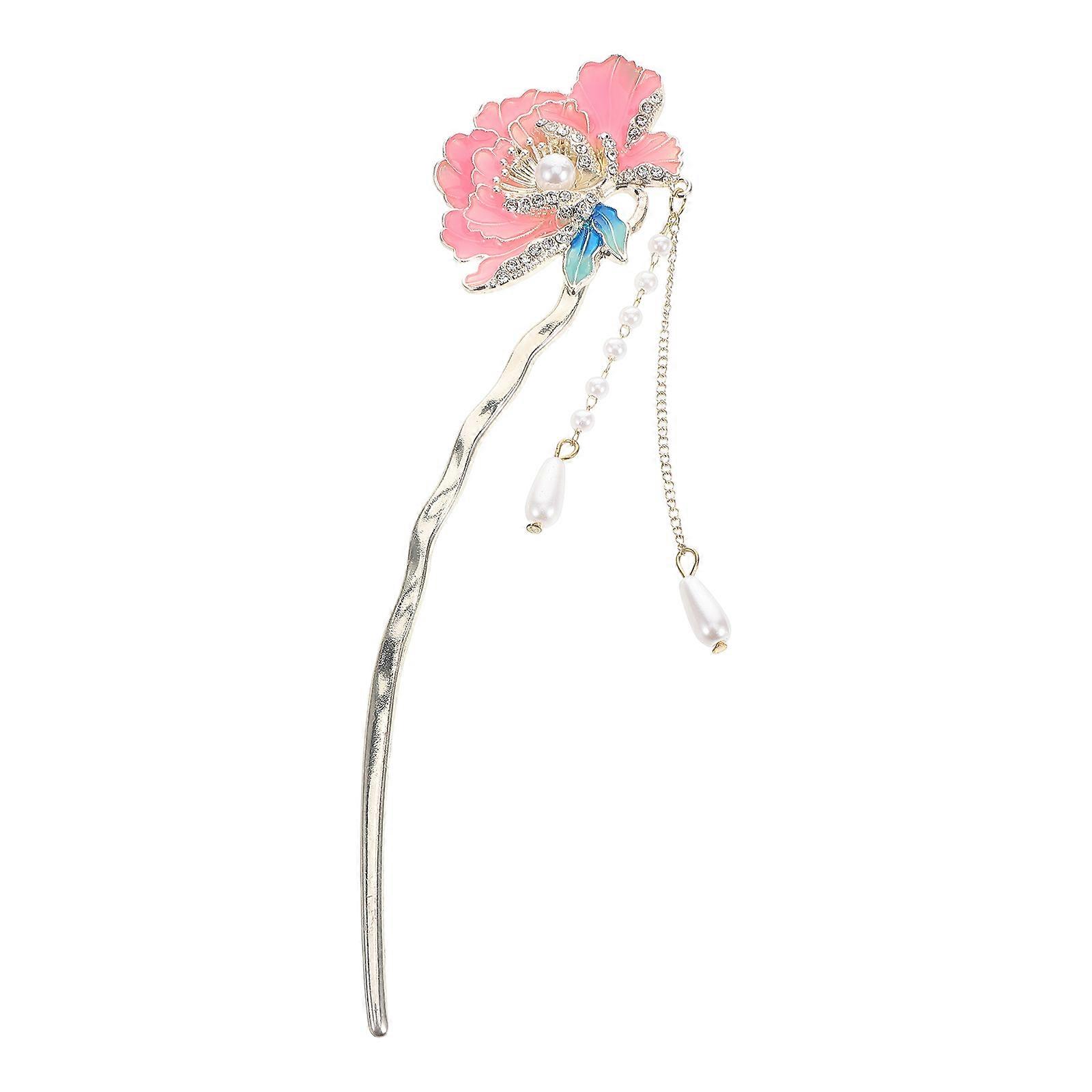 Hanfu Hair Pin U-Shaped Enamel Peony Hairpin Chinese Style For Traditional Hanfu Hairstyles Pink 16.30X4.00X0.50CM Secure Fit 1Set