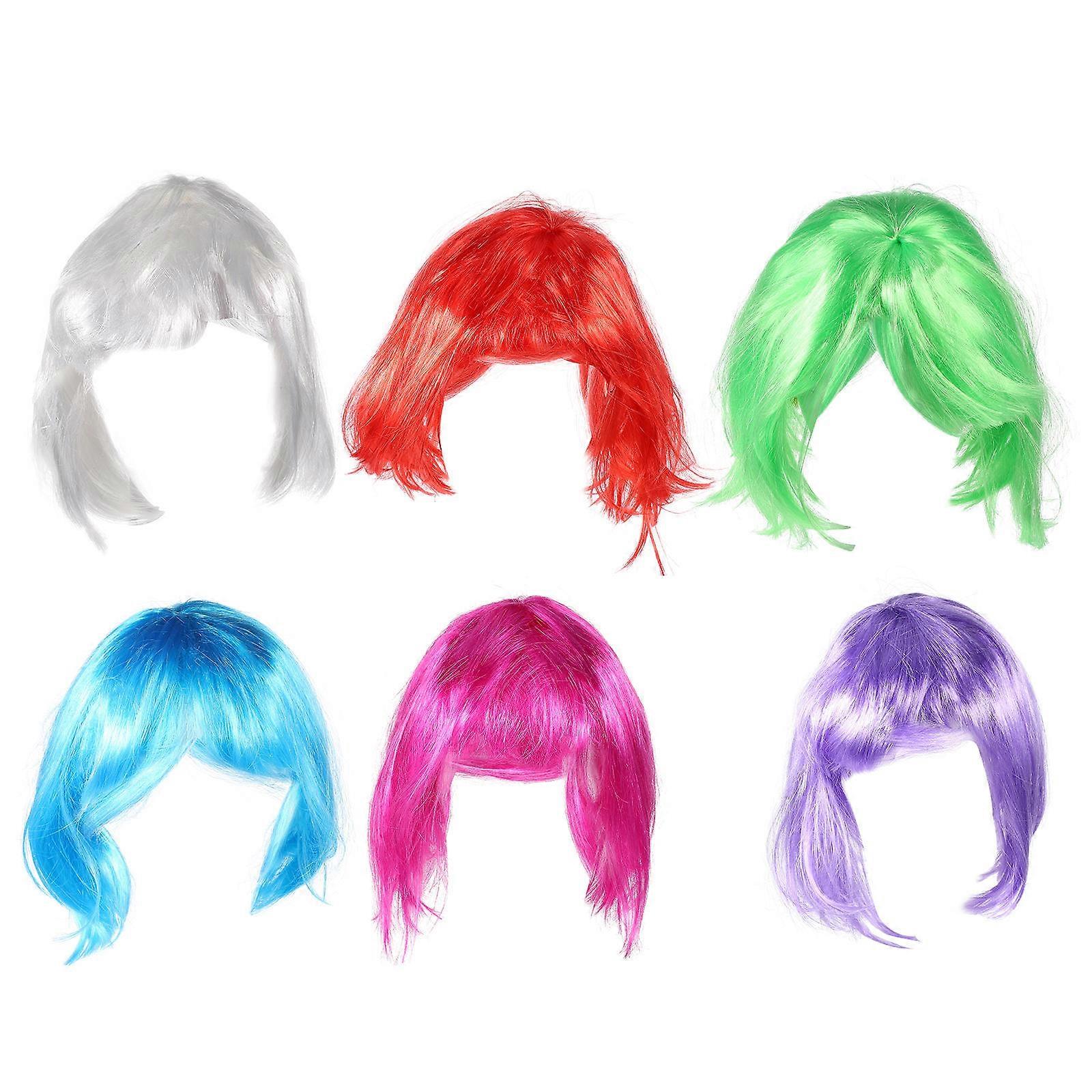 Party Hairpiece Short Bob Haircut Wig for Girls Women 6Pcs Colorful Set