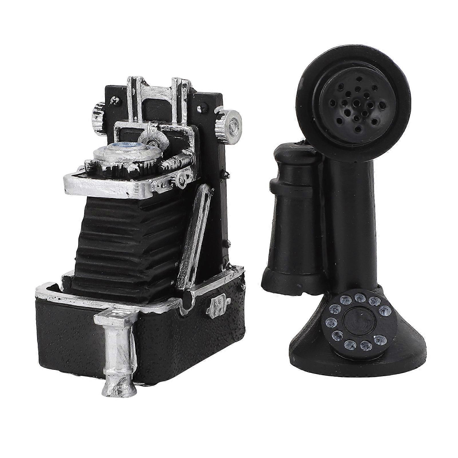 Tiny Retro Camera Telephone Statue Children's Play 7.00X5.00X8.00cm Photography Prop Compact Design 2Set