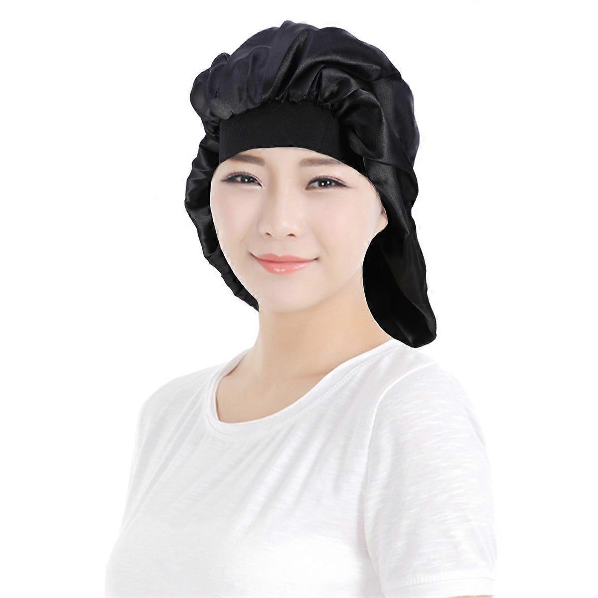 Night Sleeping Headscarf Wide Brim Style Hat for Sleep and Shower Black Color 1Pack