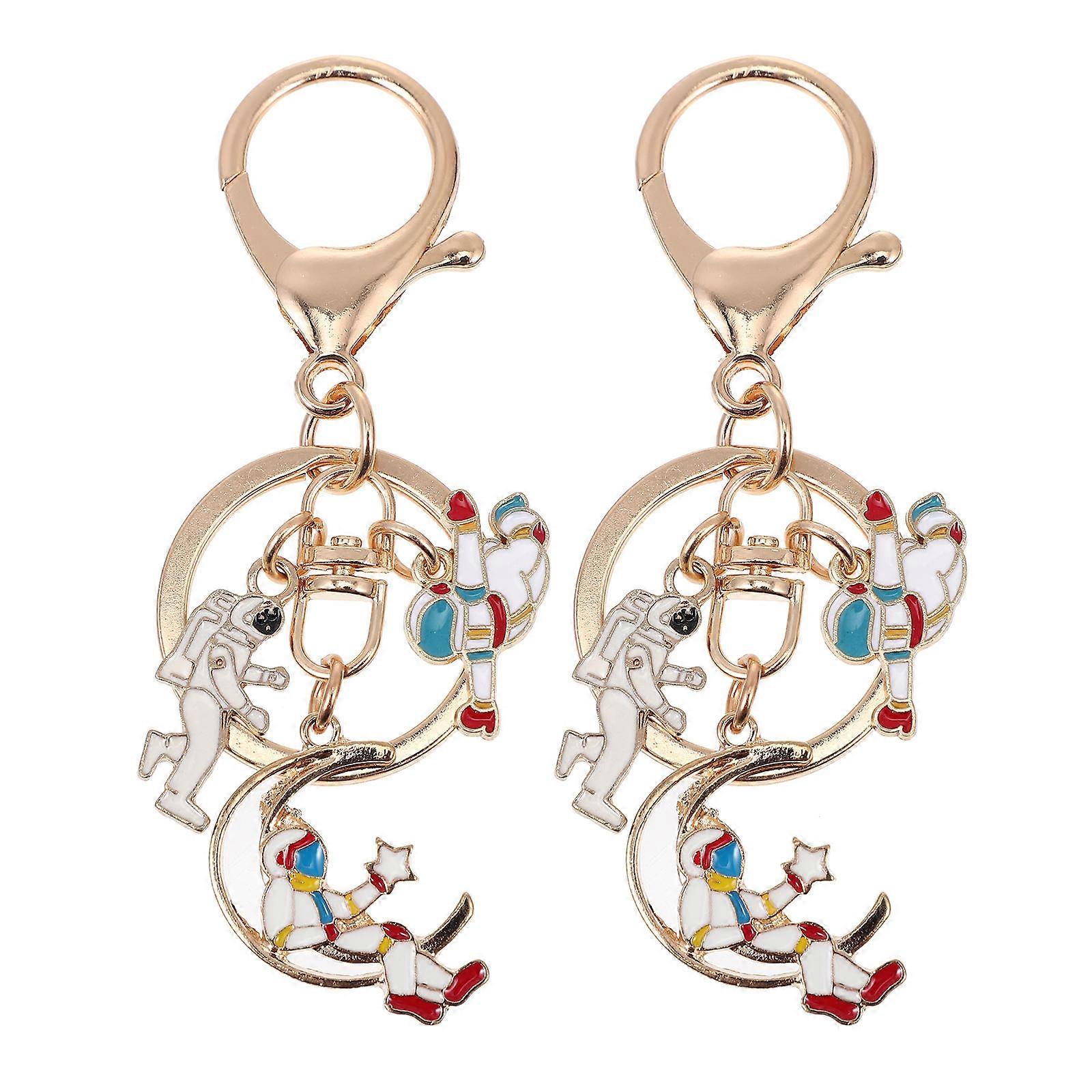 Key Chain Cute Accessories Astronaut Bag Pendant Metal Chic Look For Children And Adults 2Pcs