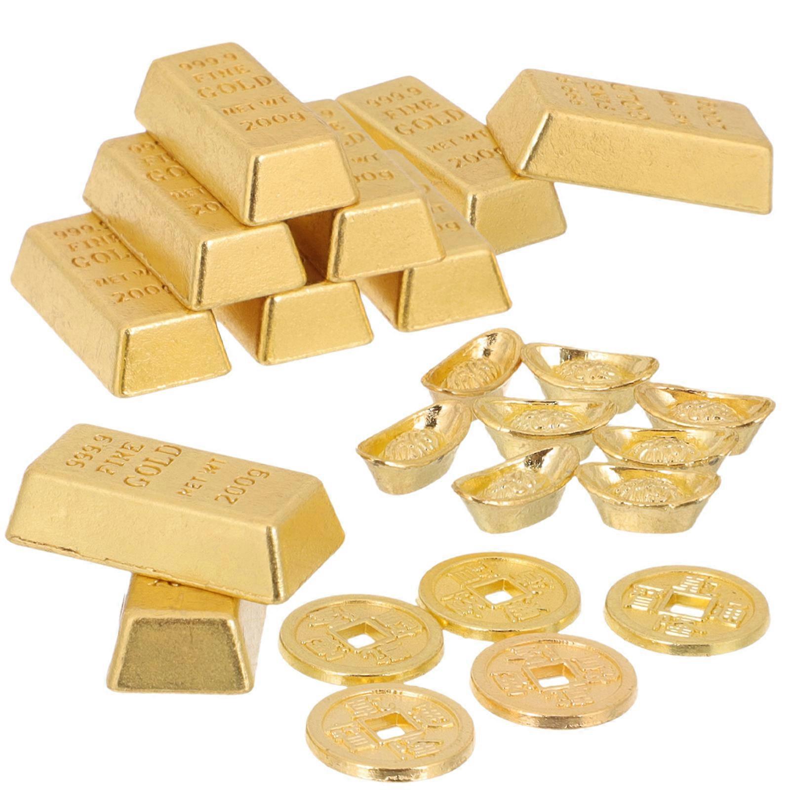 Mini House Accessory Micro Ingot Adornment Golden Coin Bar Decor for Scene Photo Props 23Pcs