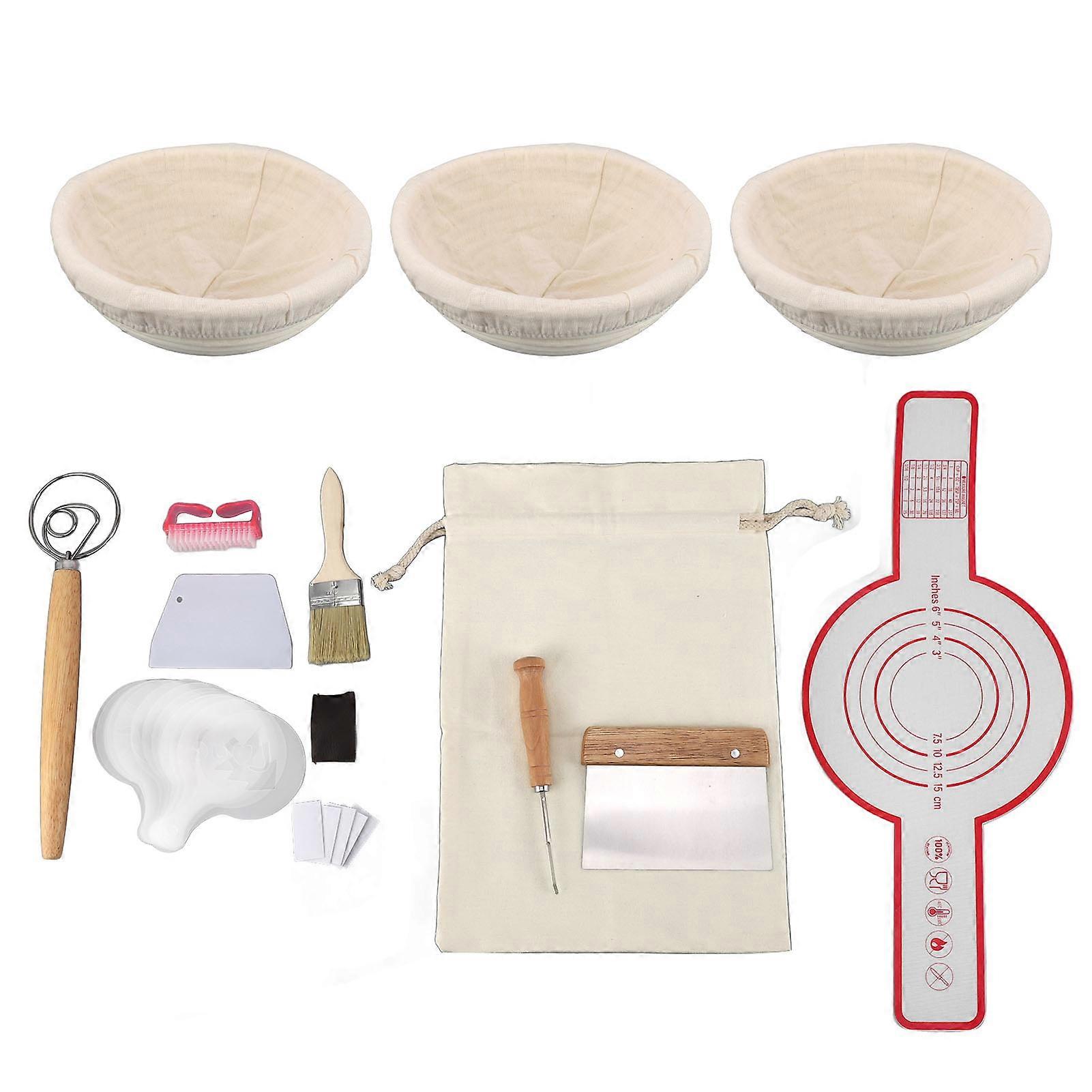 Round 22.5CM Dough Proofing Basket Set 3PCS Bread Fermentation Baskets Baking Tools European Style Kitchen Accessories With Cloth Liners High Quality
