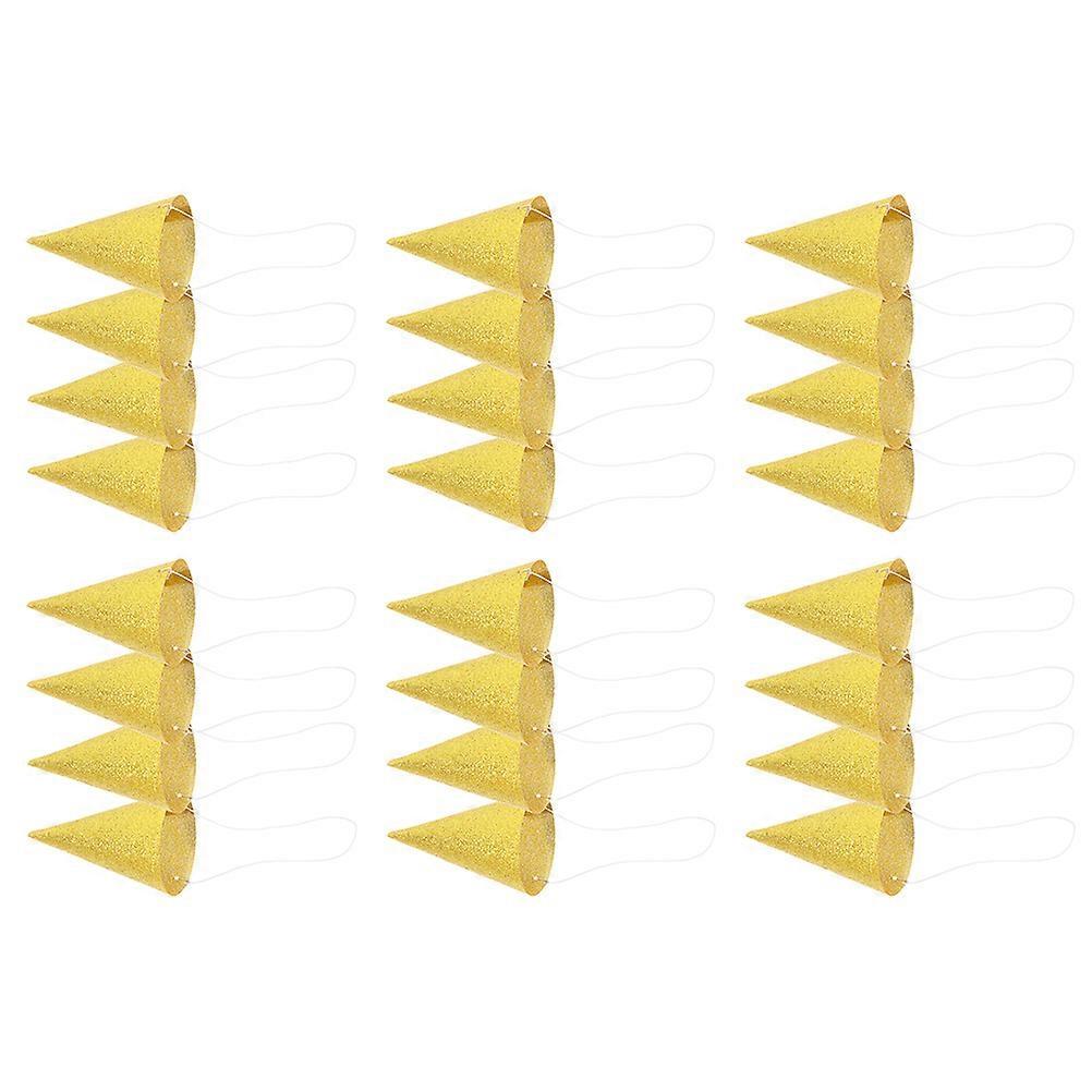 Birthday Party Hats Glitter 24Pack Golden Cone Plastic Hats Accessories For Birthday Party 10X6.5X6.5cm