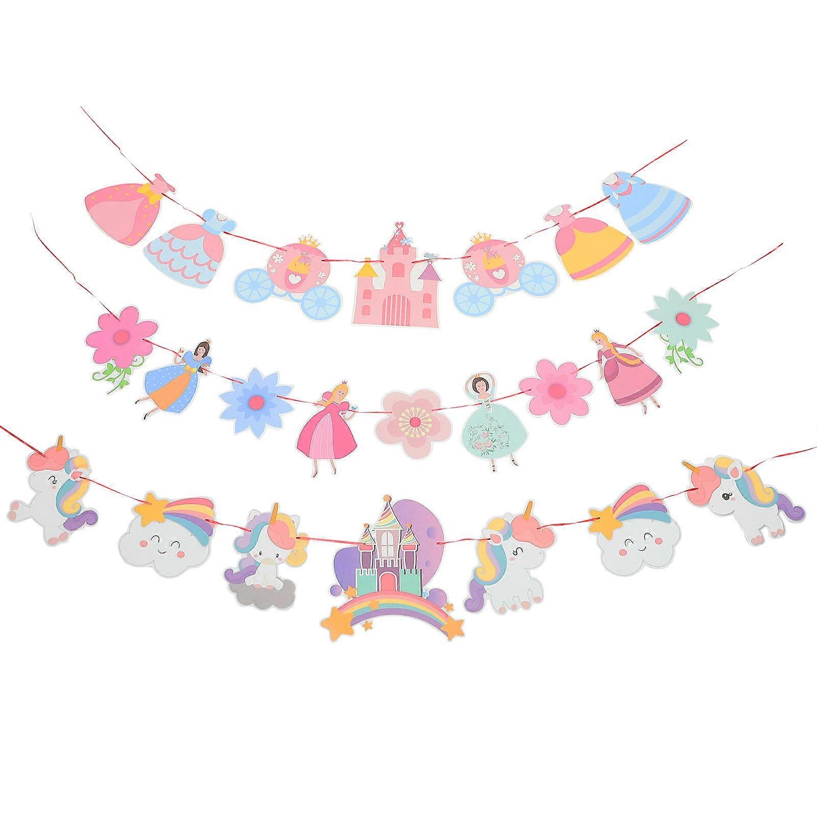 Birthday Bunting Banner 3Pcs Cartoon Flowers Princess Parties Party Decoration Multi Rectangle Atmosphere Enhancement