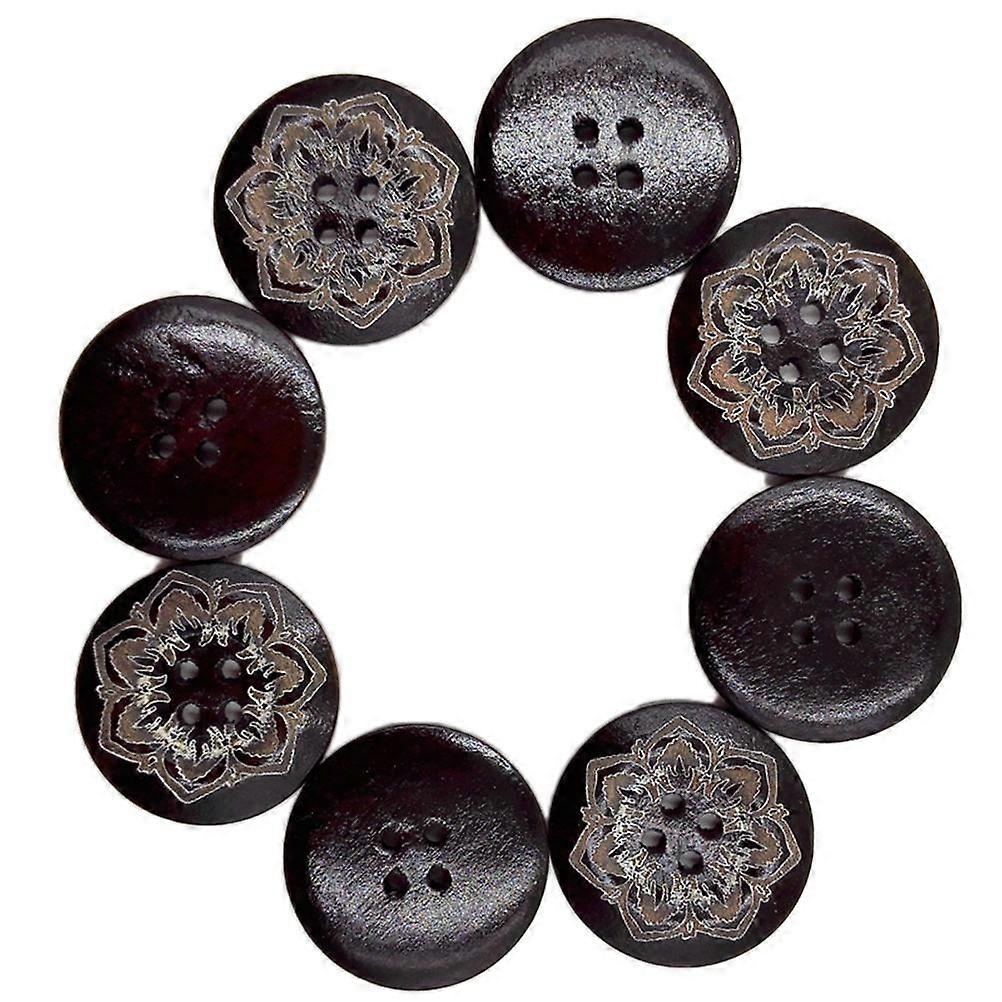 Brown Decorative Wood Buttons for Crafts and Sewing Projects 25MM Size Unique Carved Design 50Pcs