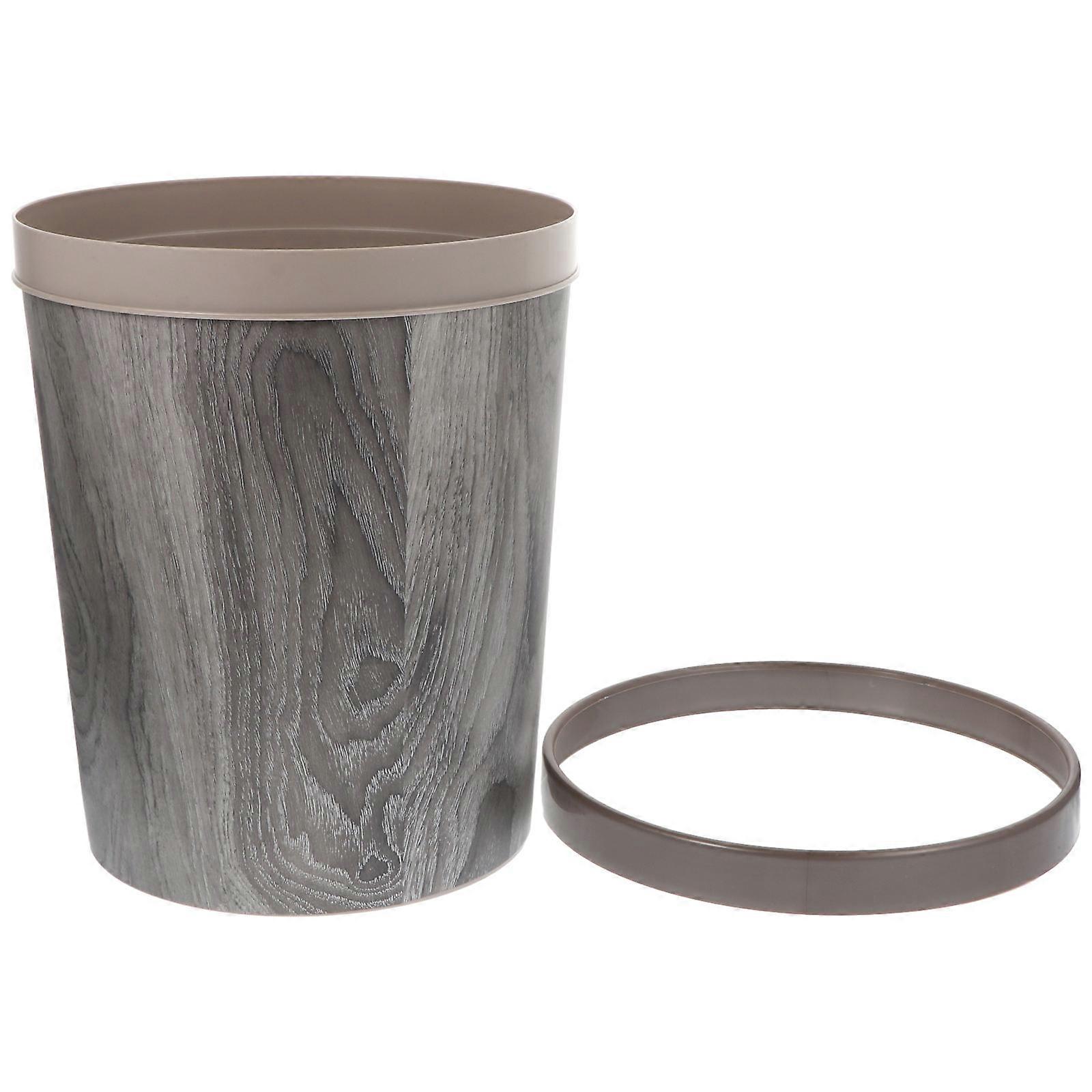 Vintage Trash Can Woodgraining Rubbish Can for Home Use 1Pcs Plastic