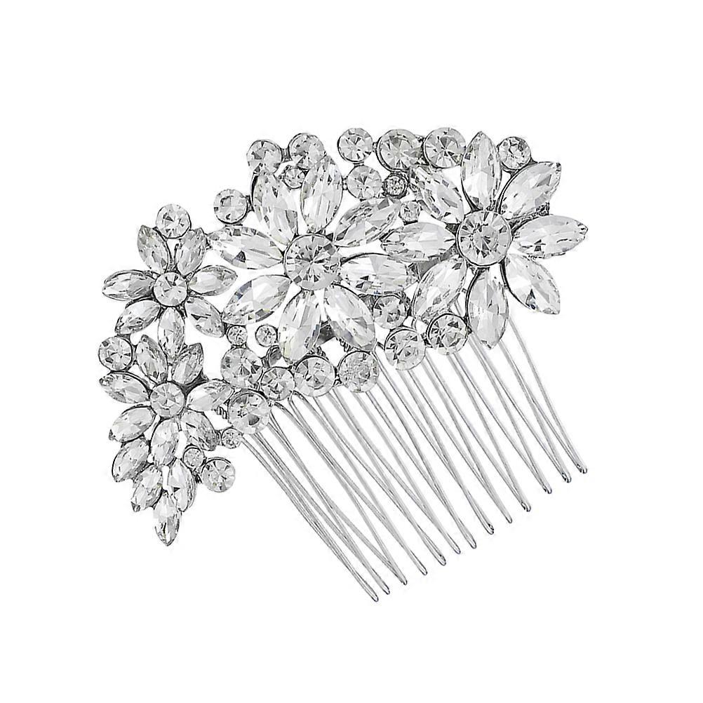 Rhinestone Hair Comb Silver with Elegant Floral Design Wedding Hair Comb for Decoration