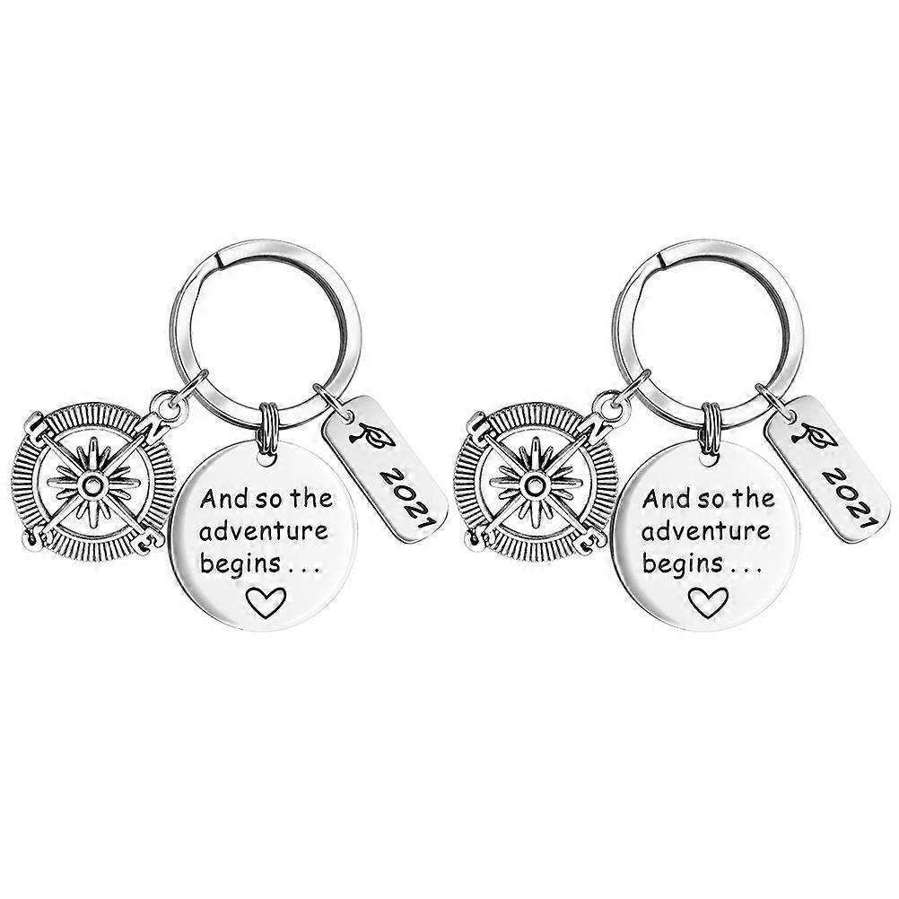 Engraved Keychains Compass Shape Silver Daily Use For Keys Bags Purses Backpacks Graduation Gift 2Pcs