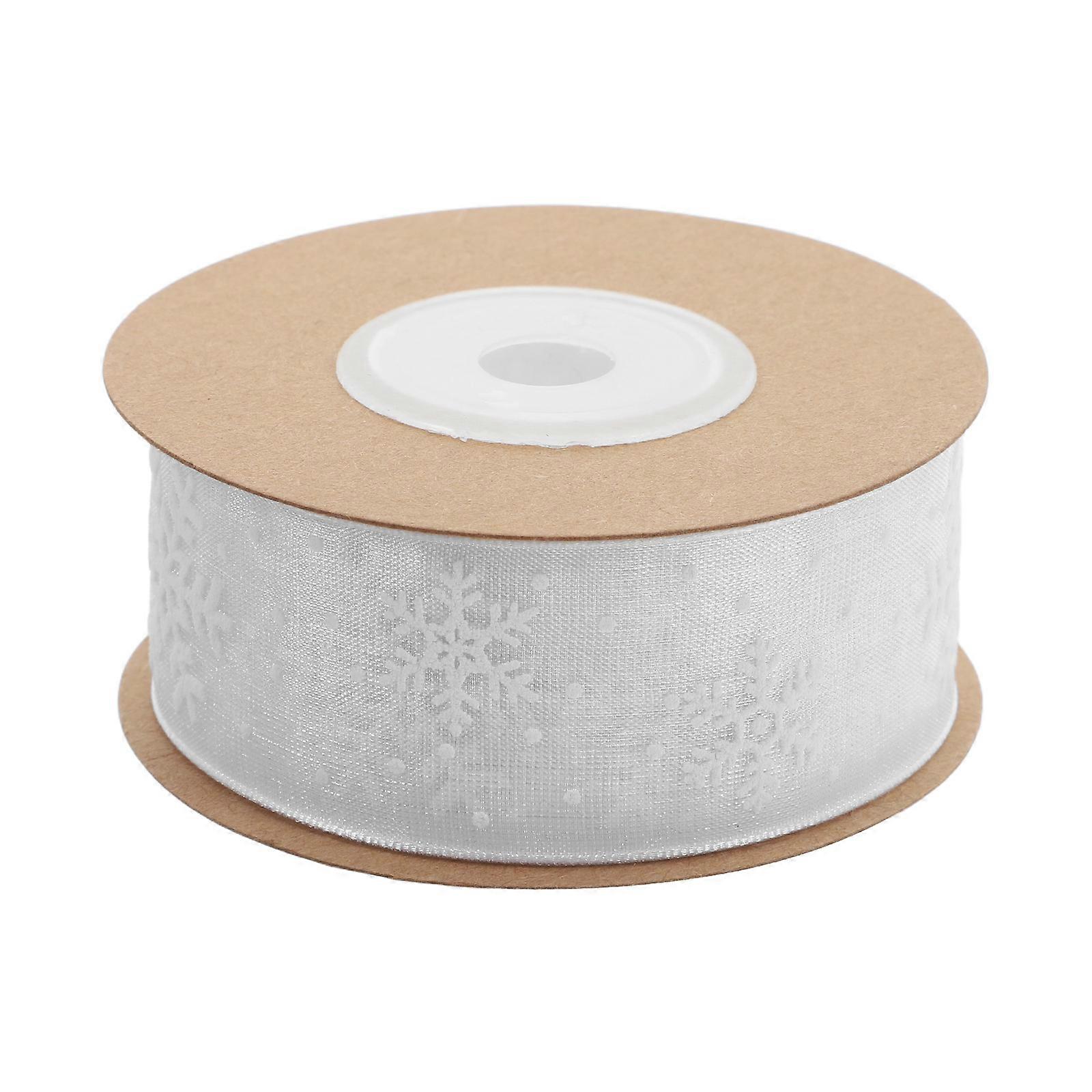 Snowflake Ribbon White for Decoration 1 Roll Polyester Winter Holiday Wrap