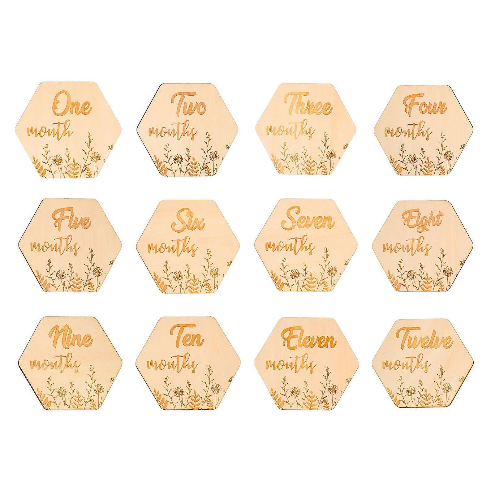 Infant Birthday Month Discs Monthly Commemorative Card Wood Baby Growth Record 12Set