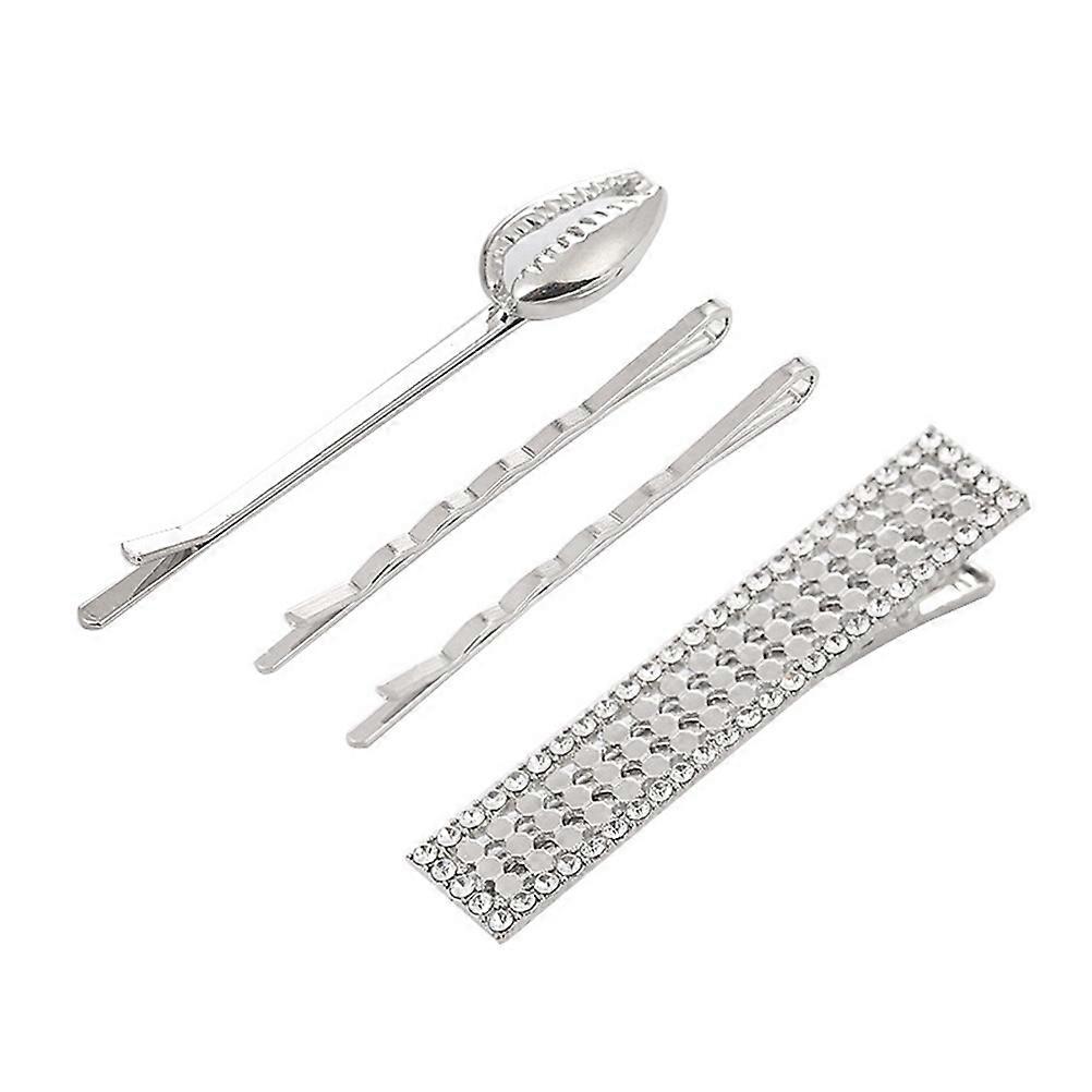 Hair Barrettes Rhinestone Decorative Bobby Pin Women Simple Style Silver 4Pcs Size 1