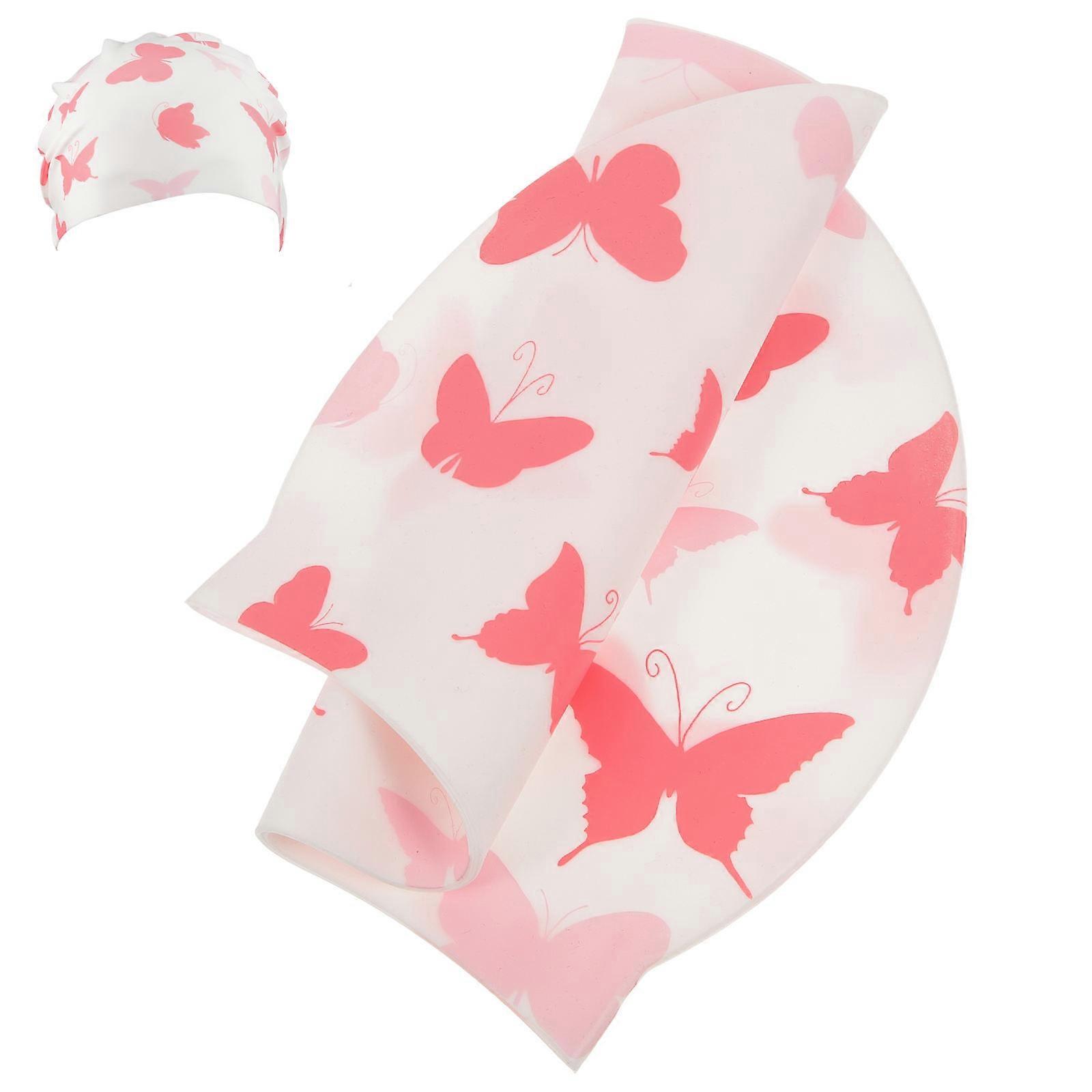 Silicone Swim Cap Waterproof Protector for Adults Long Hair Pink Round Design 2Pack