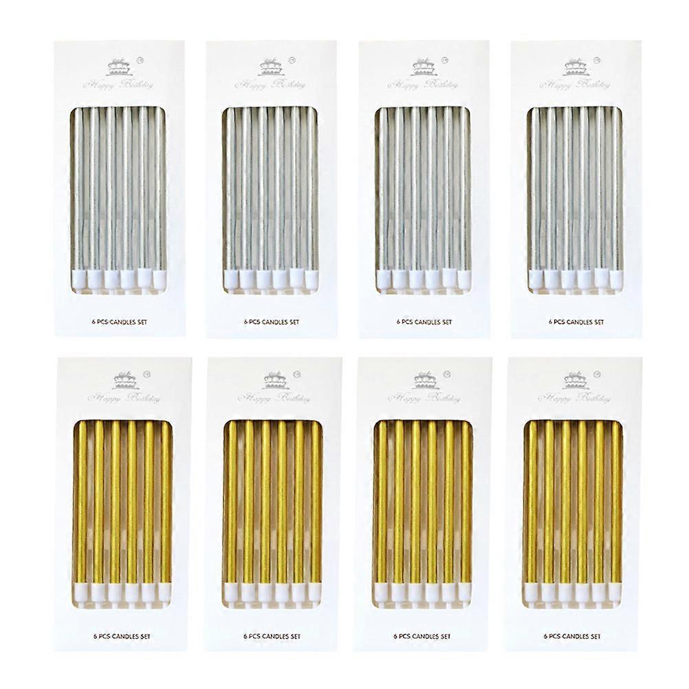 Birthday Candles Metallic Long Thin Candles for Birthday 48Pcs with Holders