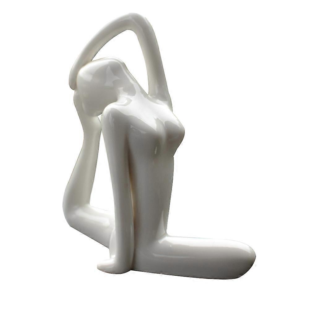 Ceramic Ornament Artwork Yoga Statue Adornment Girls Shape for Home Decor Office Use White Porcelain 12x11cm 1Set