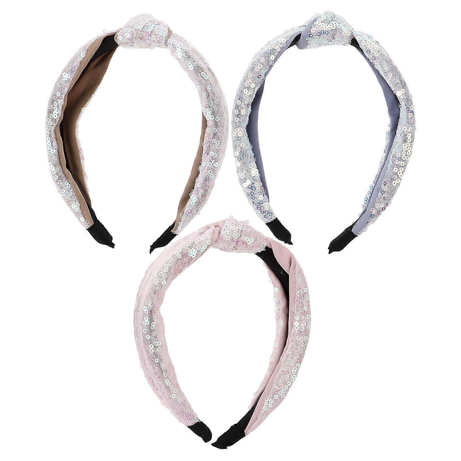 3pcs Knotted Wide Headbands for Women – Stylish Sequined Hairbands in Pink & Sky Blue – Versatile Hair Accessories for Everyday & Special Occasions