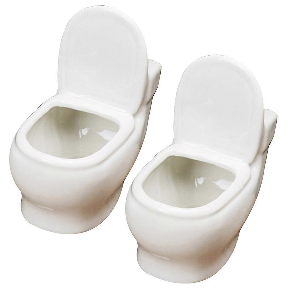 Porcelain Bonsai Pot Toilet Flowerpot with Drainage Hole Office Decoration 4.6×4.3×2.8in 2Pcs