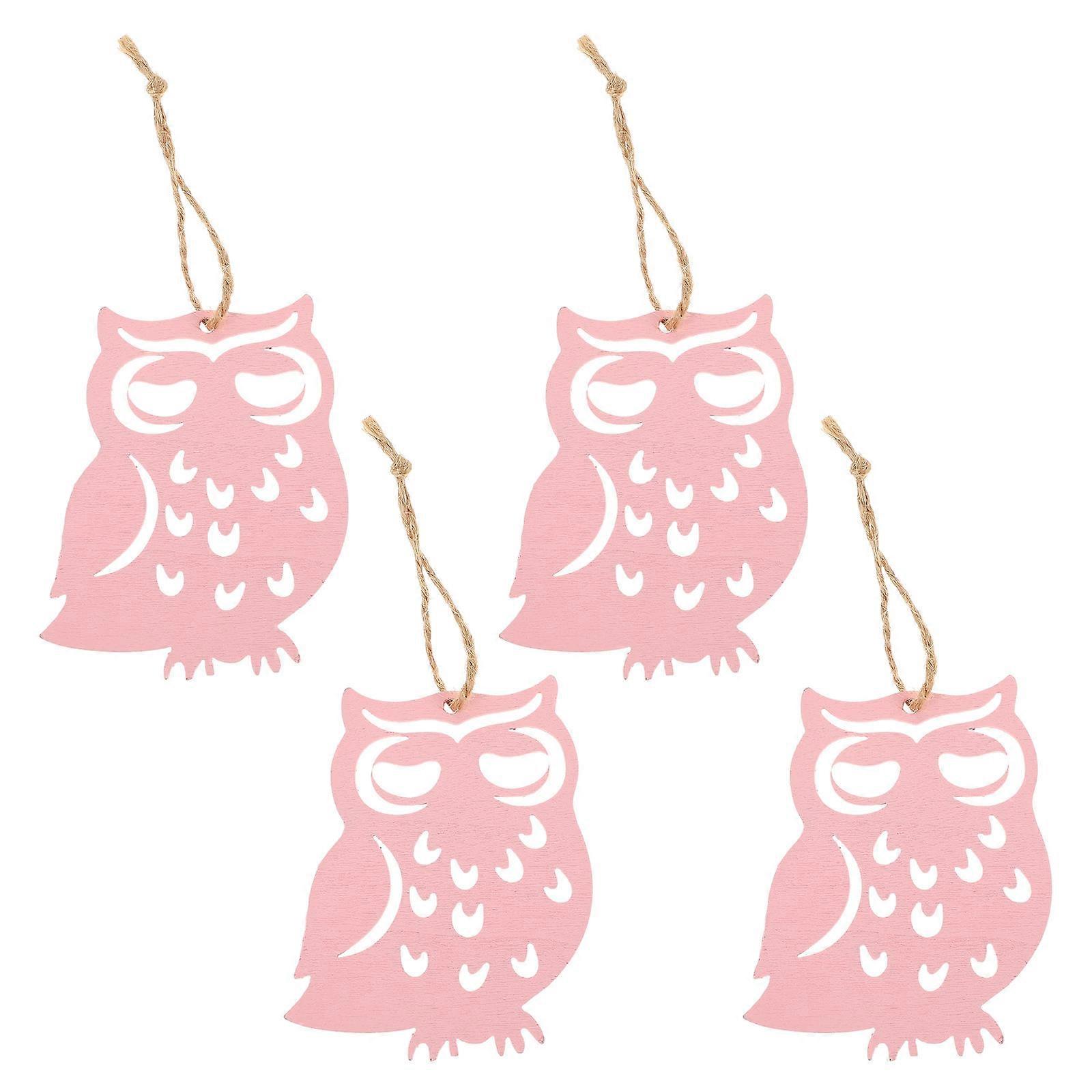 Synthetic Material Owl Wood Slices Indoor Outdoor Hanging Ornaments 4Pcs