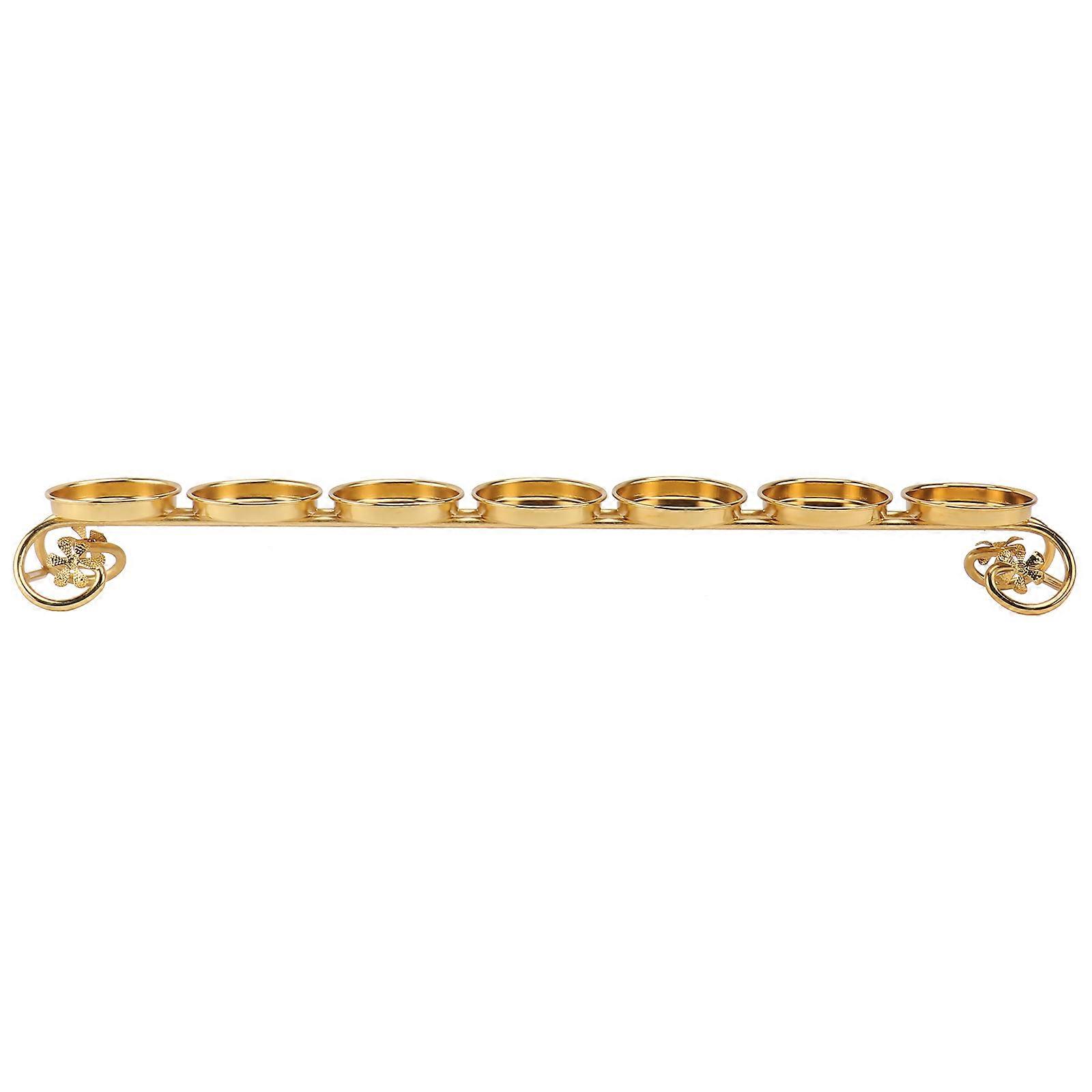 This item is a round candlestick, made of premium and safe alloy material, for a long term use. Creative shape design with fine workmanship makes it suitable for most occasions. They are not only can be used as candlestick, also can be used as a household decoration. Features - Color: Golden. - Material: Alloy. - Size: 35.00X5.00X3.80cm/13.76X1.97X1.49inch. - Note: It contains 7 pieces of candle cups. - Add a warm light and tasteful elegance to any home or event decor with our round candle cup. - Adorn your table, decorate your room, create a warm atmosphere. Give you a different festival. - Suitable for daily prayers, Buddhist worship, butter lamps, butter lamps, candlelight, etc. - Perfect for daily use, weddings, events, aromatherapy, spa, , meditation, birthdays, celebration ceremonies. - candles for long time, and you can rest assured of using. No corners, safe and beautiful. Package list: 1 x Candleholder