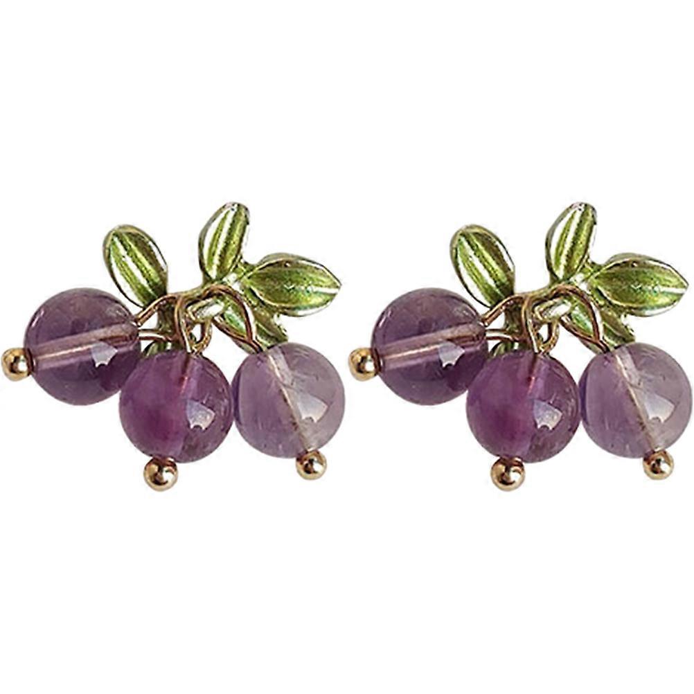 Fruit Jewelry For Women Small Earrings Crystal Bead Grape Earrings Everyday Use Purple 1Pair