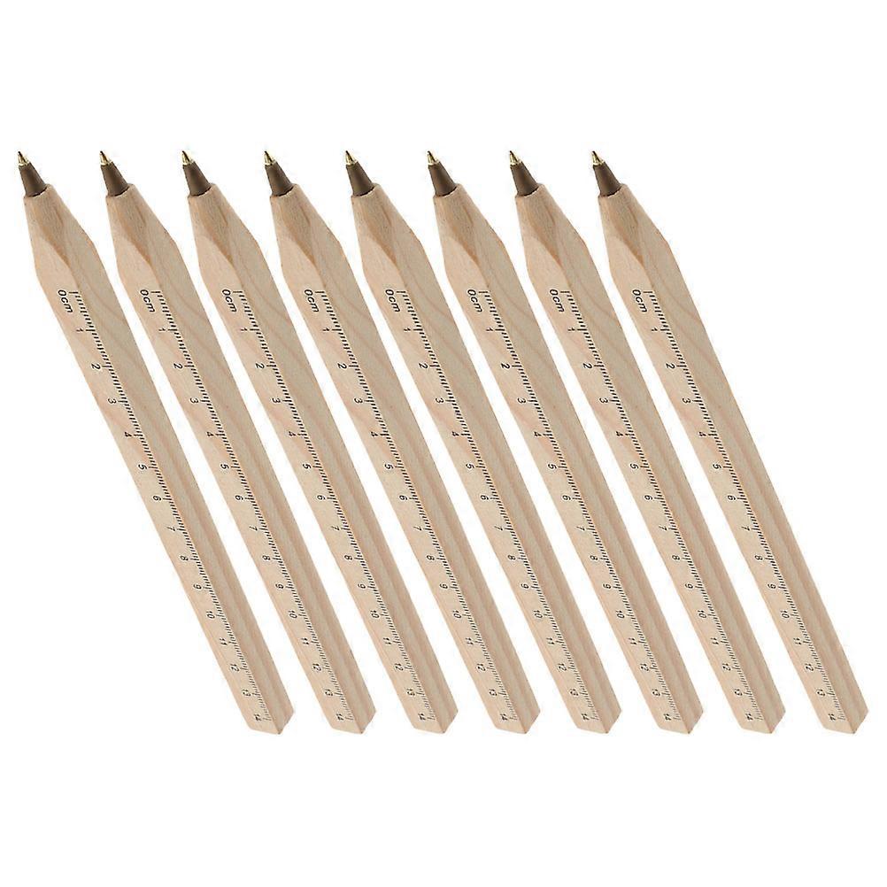 Beige Wooden Ballpoint Pen for Writing with Ruler 8Pcs Office and School