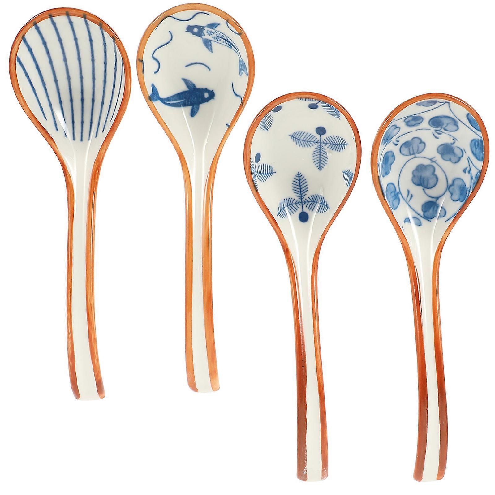 Ceramic Soup Spoon Japanese Design Kitchen Use Assorted Color Drinking Soup 4Pcs