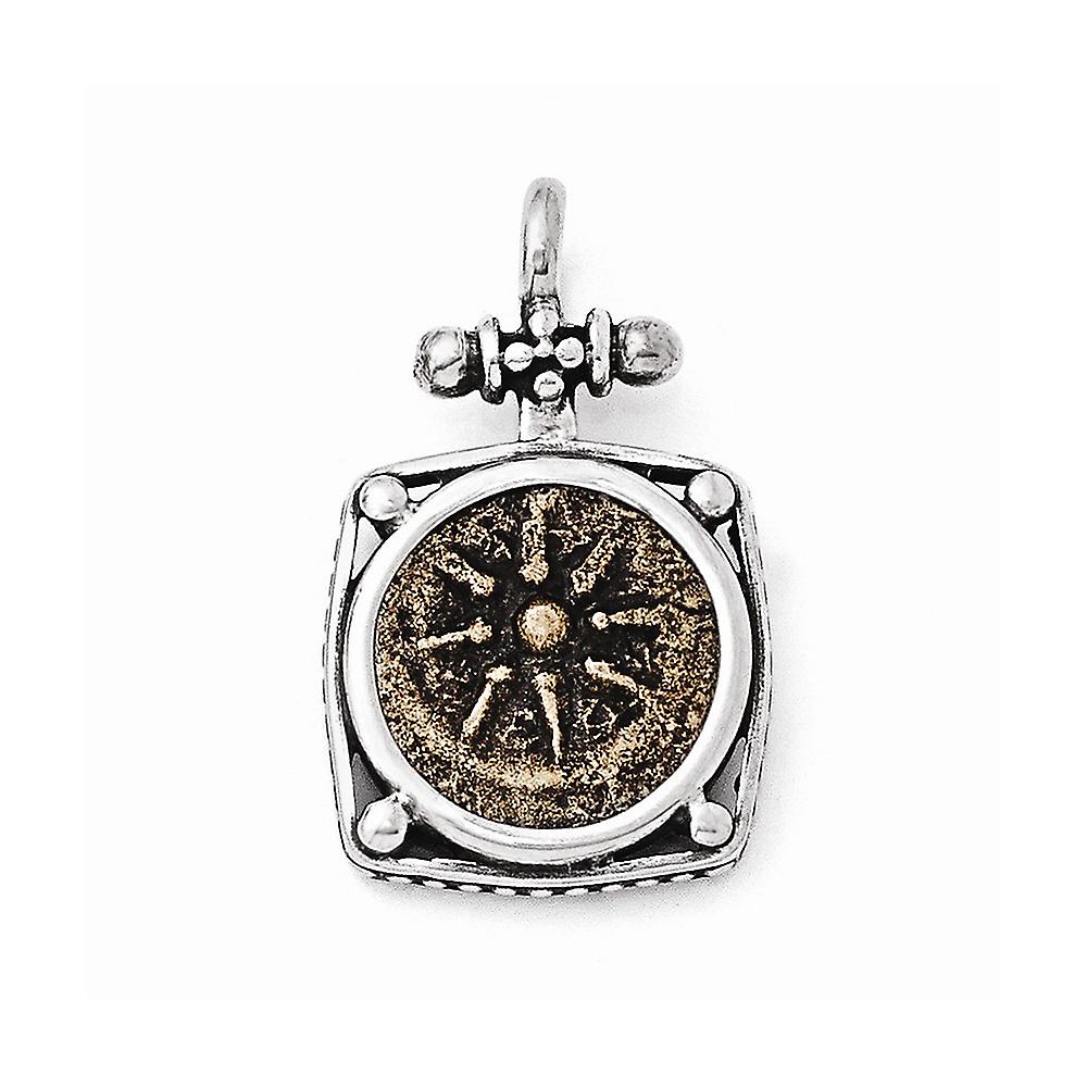 925 Sterling Silver and Bronze Oxidized Widows Mite disk Pendant Necklace 23x18mm Wide-Pendant for Women