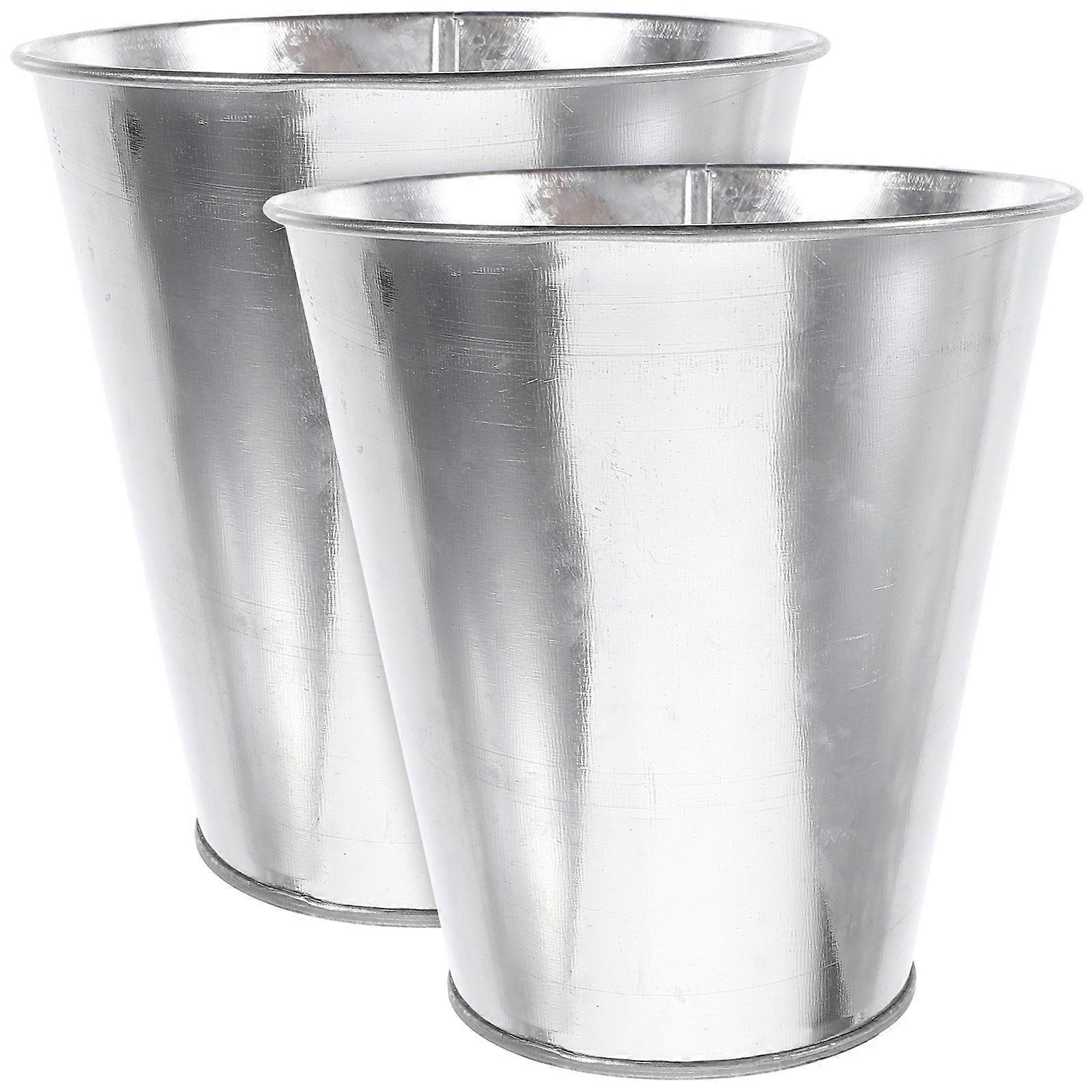 Compact Iron Flower Pot Galvanized Steel Home Decoration Round Silver 12X13CM Planting 2Set