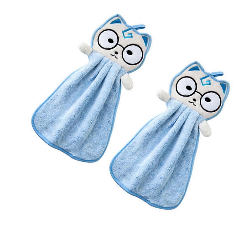 Serviettes absorbantes à motif dessin animé (lot de 2), bleues, à suspendre pour la cuisine et la salle de bain. Absorbantes.