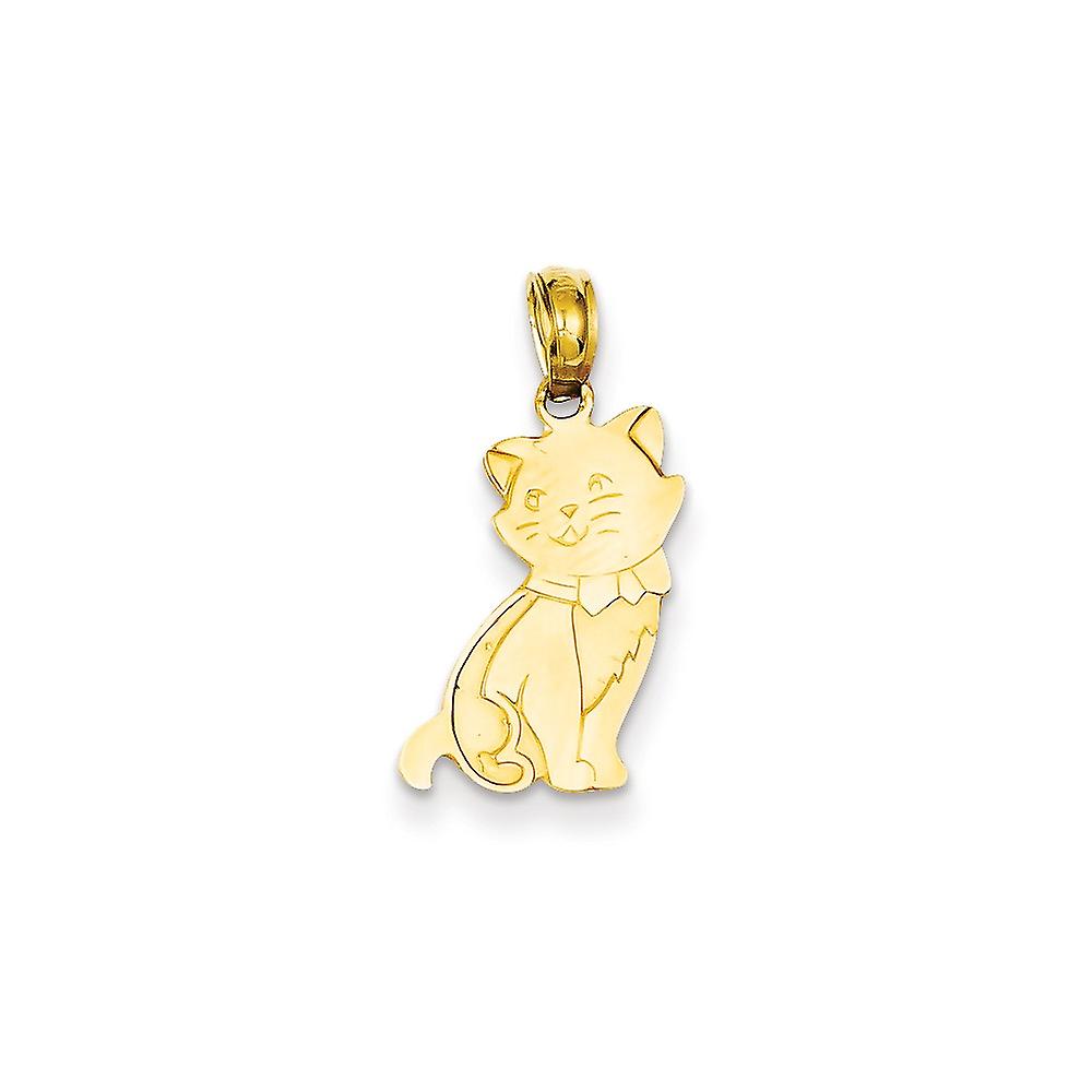 14k Yellow Gold Polished Sitting Cat Pendant Necklace 21x10mm Wide Pendant for Women - 1.1 Grams