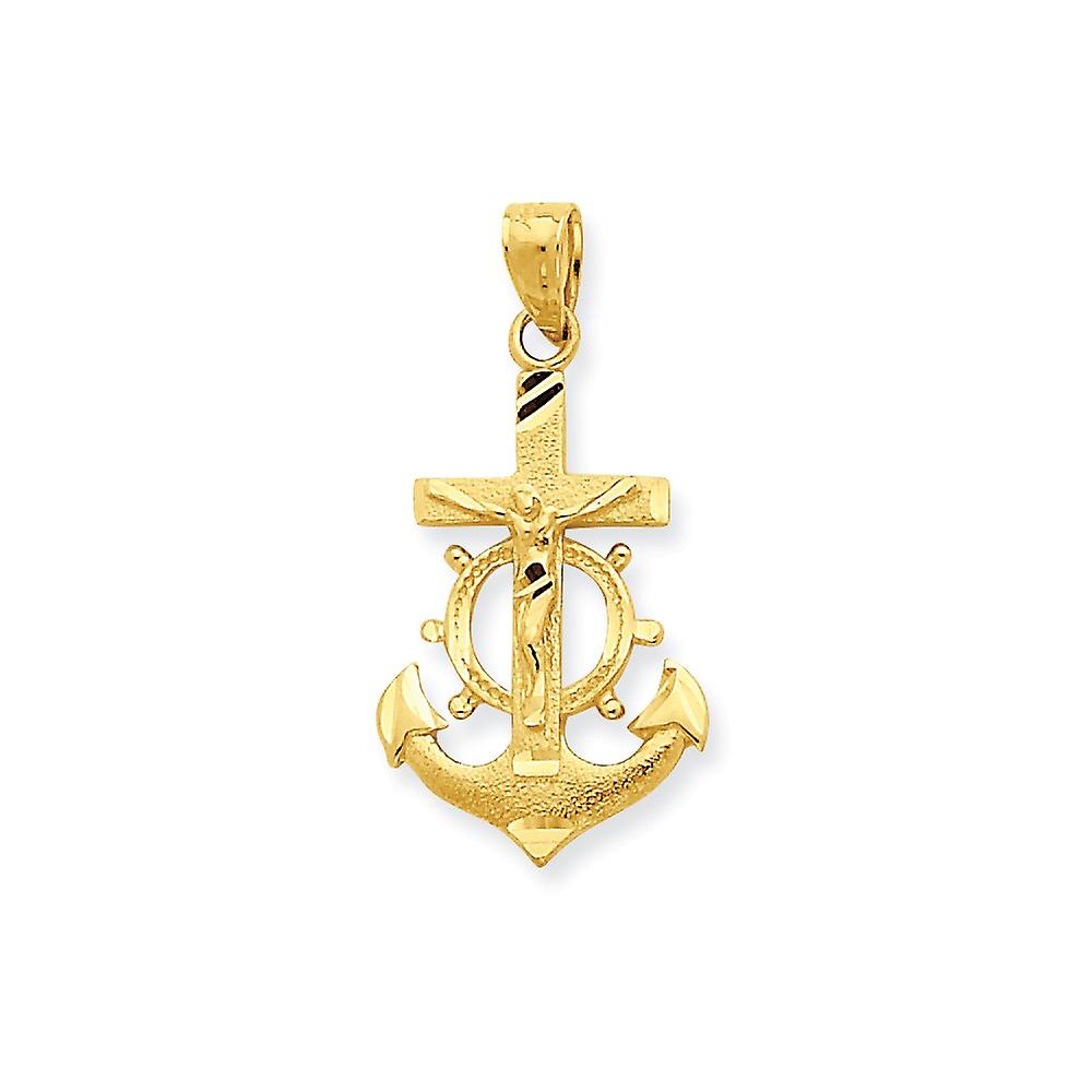 10k Yellow Gold Mariner Crucifix Pendant - Measures 30x16mm Wide - 1.2 Grams in 10k Yellow Gold - Product Attributes: - Diamond Cut - Polished - Textured - - Charm/Element Width: 14.62 mm - Width of Item: 16 mm - Charm/Element Length: 21.41 mm - Length of Item: 30 mm - Finish: Polished - Feature: Solid - - This Item Does Not Ship With a Chain