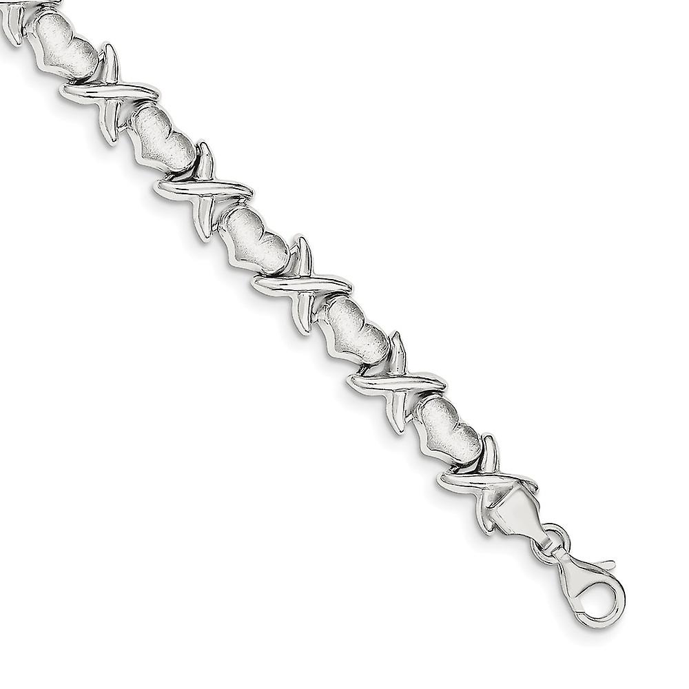 925 Sterling Silver Fancy Lobster Closure Polished and Satin X And Love Hearts Bracelet 8mm Wide Link Bracelet for Women