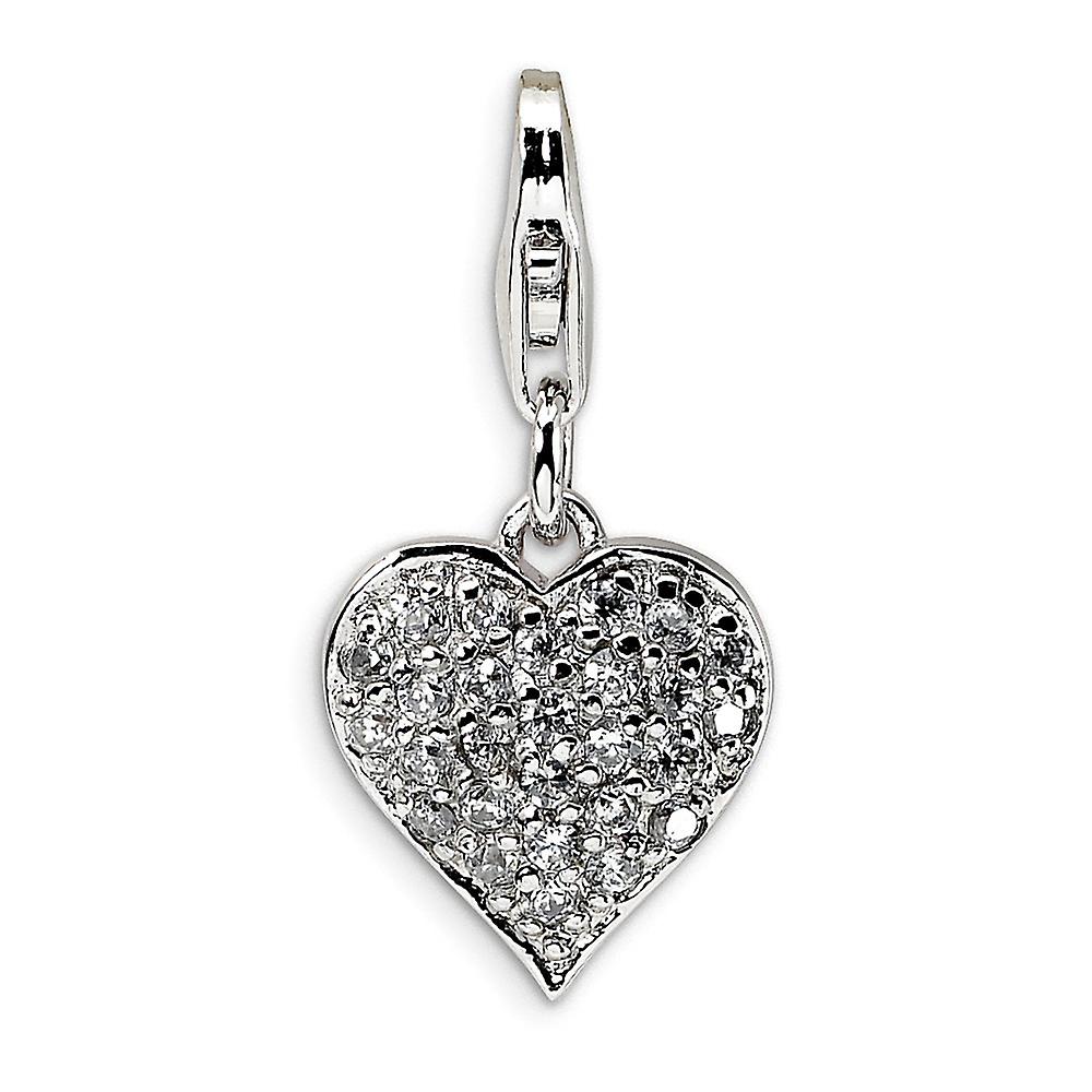 925 Sterling Silver Solid Reversible Fancy Lobster Closure 3 D Cubic Zirconia and Red Enamel Love Heart With Lobster Cla