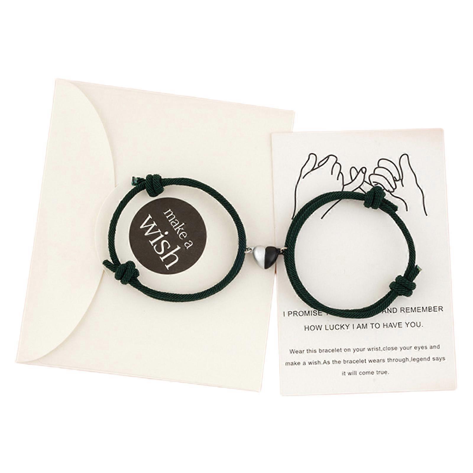 Couple Magnetic Bracelet Adjustable Long Distance Bracelets Mutual Attraction Hand Rope Chain Bracelets for Anniversary Dark green