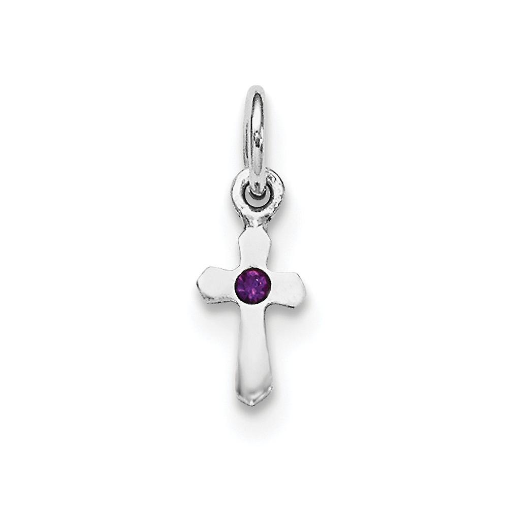 925 Sterling Silver Polished Rh Plated Preciosca Crystal Feb Religious Faith Cross Pendant Necklace 17x5.91mm Wide Penda