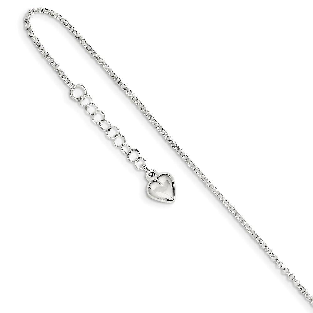 925 Sterling Silver Fancy Lobster Closure Polished Love Heart With 1inch Ext. Anklet 9 Inch 8mm Wide Anklet for Women