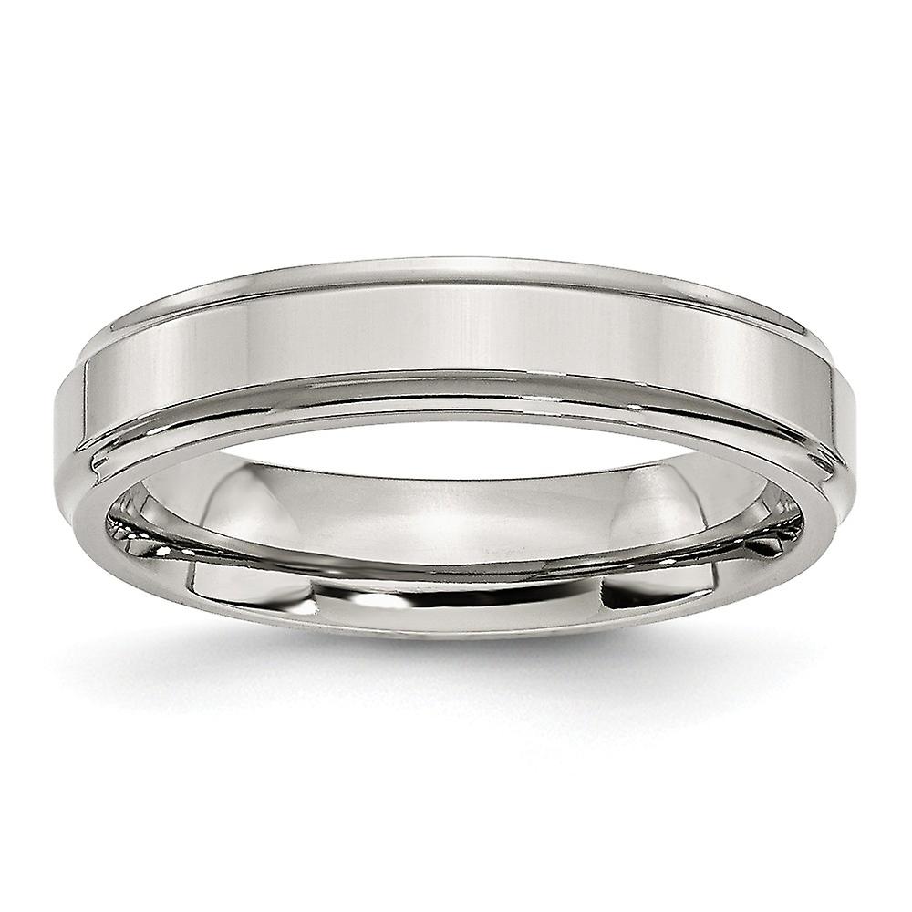 Stainless Steel Ridged edge 5mm Polished Band Ring Ring for Women and Men - Ring Size: 6 to 13