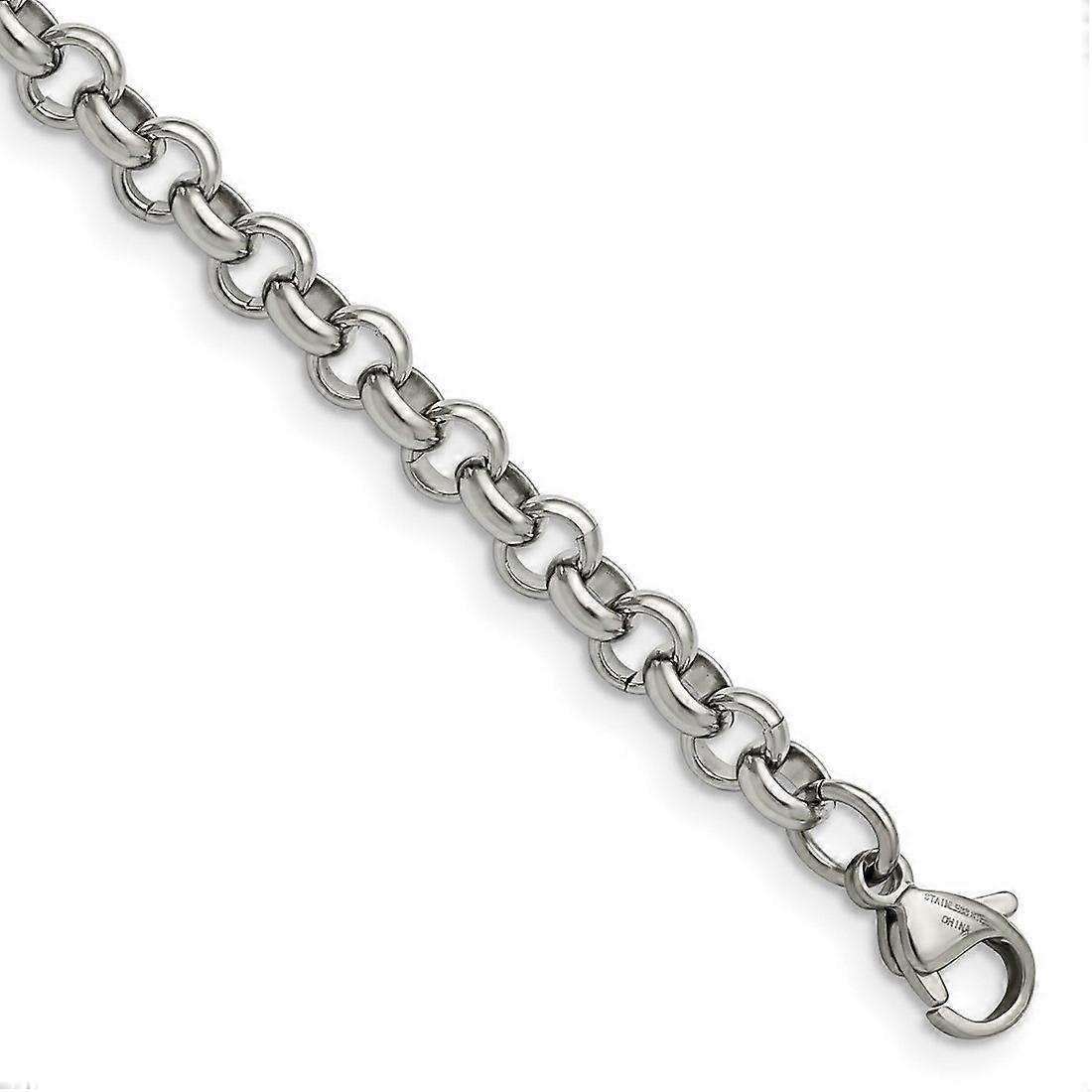 Stainless Steel Polished Fancy Lobster Closure 6mm Rolo Chain Bracelet 7.5 Inch Link Bracelet for Women and Men