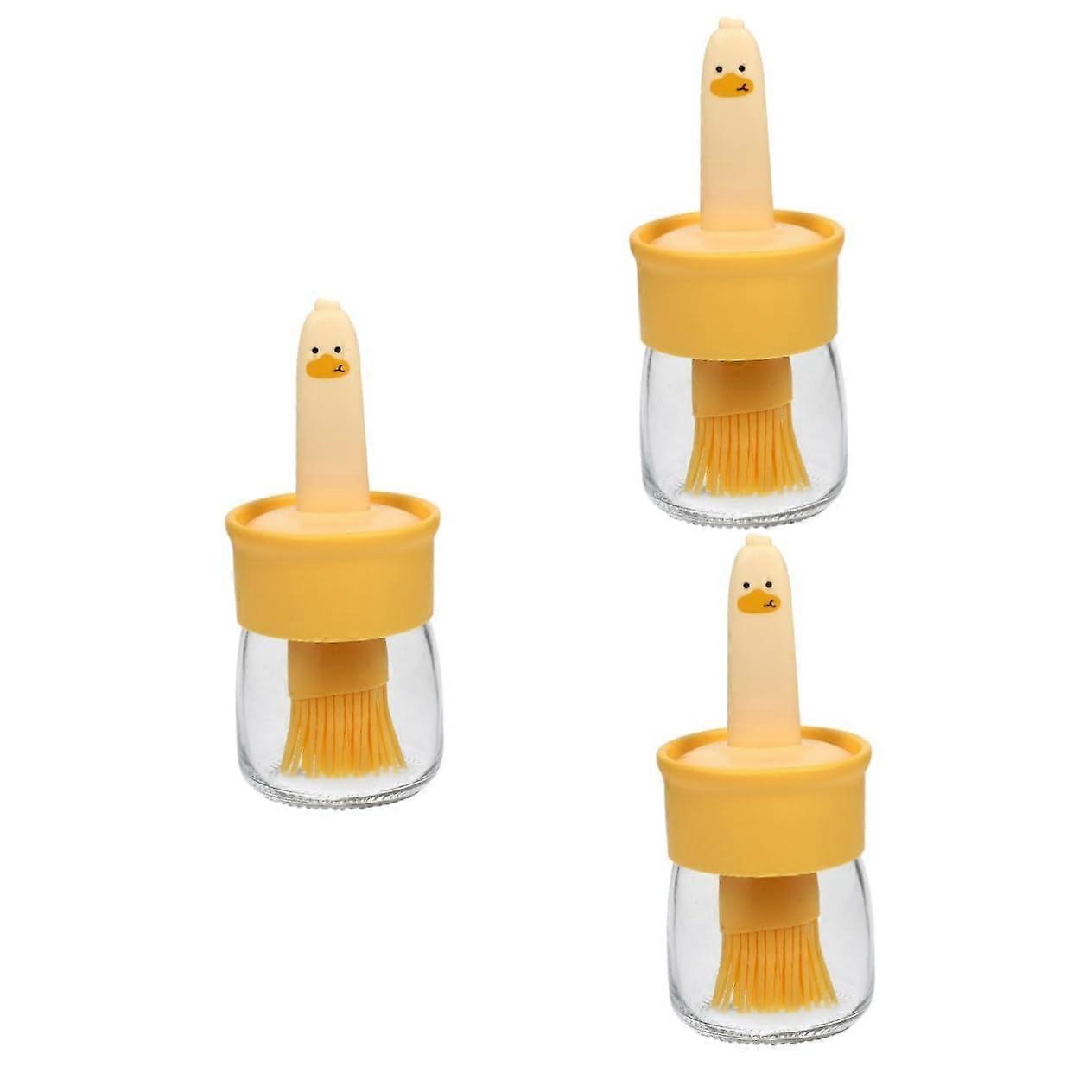 Silicone Oil Brush Set of 3, Pastry Brush Oil Dispenser with Silicone Brush for Cooking, Grilling, and BBQ, Yellow PP