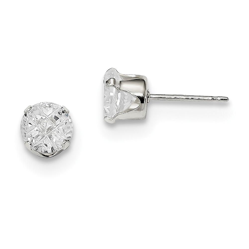 925 Sterling Silver Laser cut Snap setting Post 6mm Round 4 Prong Cubic Zirconia Stud Earrings 6x6mm Wide Stud Earring f
