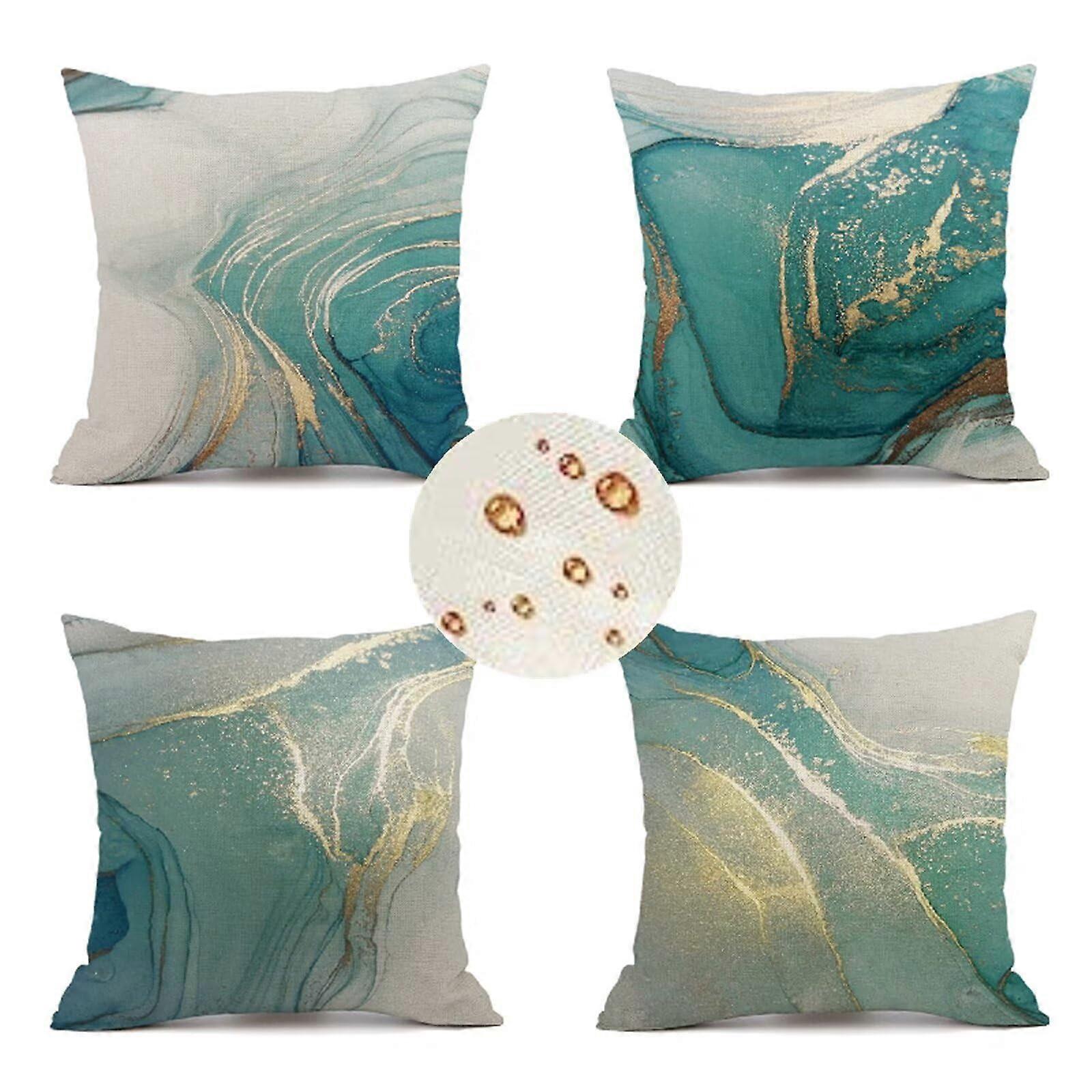 Outdoor Weatherproof Cushion Cover 60 x 60 cm Set of 4 Blue Waterproof Linen Square Cushions for Garden Patio Chair