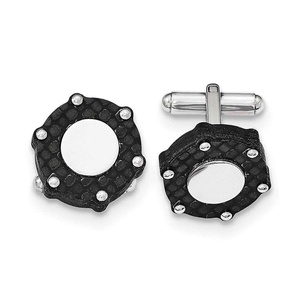 Stainless Steel Polished and Brushed Carbon Fiber Cuff Links Cuff Link for Men