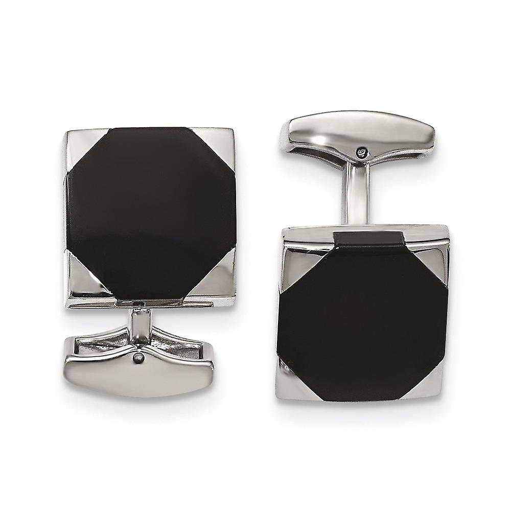 Stainless Steel Polished Black Rubber Square Cuff Links Cuff Link for Men