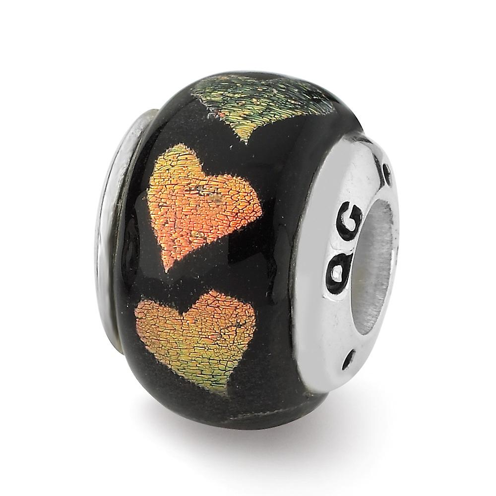 925 Sterling Silver Oxidized Reflections Orange Green Love Hearts Dichroic Glass Bead Charm 12.73x9.09mm Wide Pendant Ne