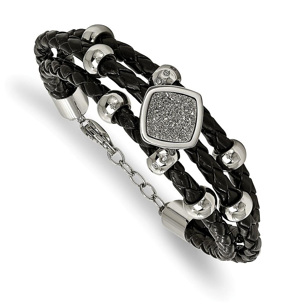 Stainless Steel Fancy Lobster Closure Polished With Druzy and Crystal Leather W/.75inch Ext. Bracelet 7 Inch Link Bracel