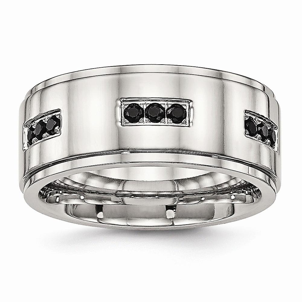 9mm Stainless Steel Polished Ridged Edged Black Cubic Zirconia Ring-Ring for Women - Ring Size: 8 to 14