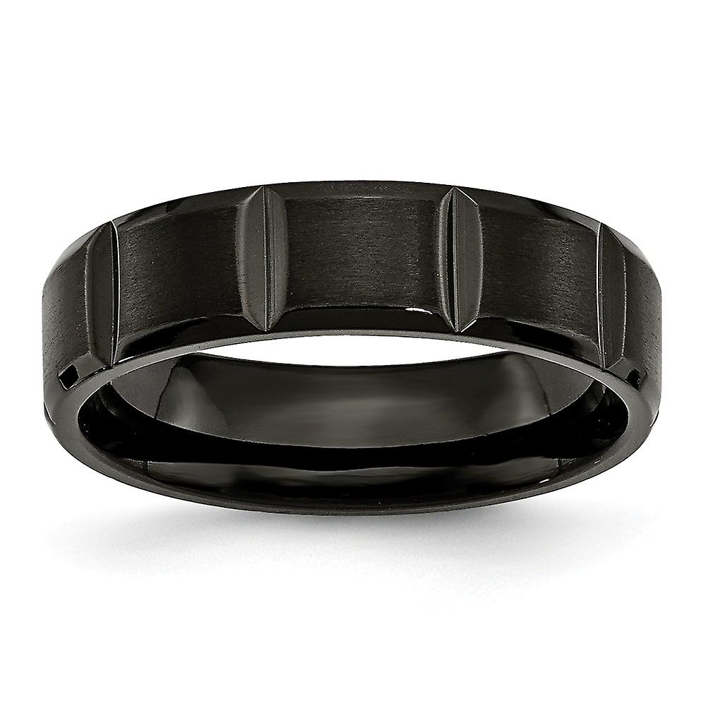 Black Titanium Grooved and Notched 6mm Brushed And Polished Band Ring Ring for Women and Men - Ring Size: 6 to 13