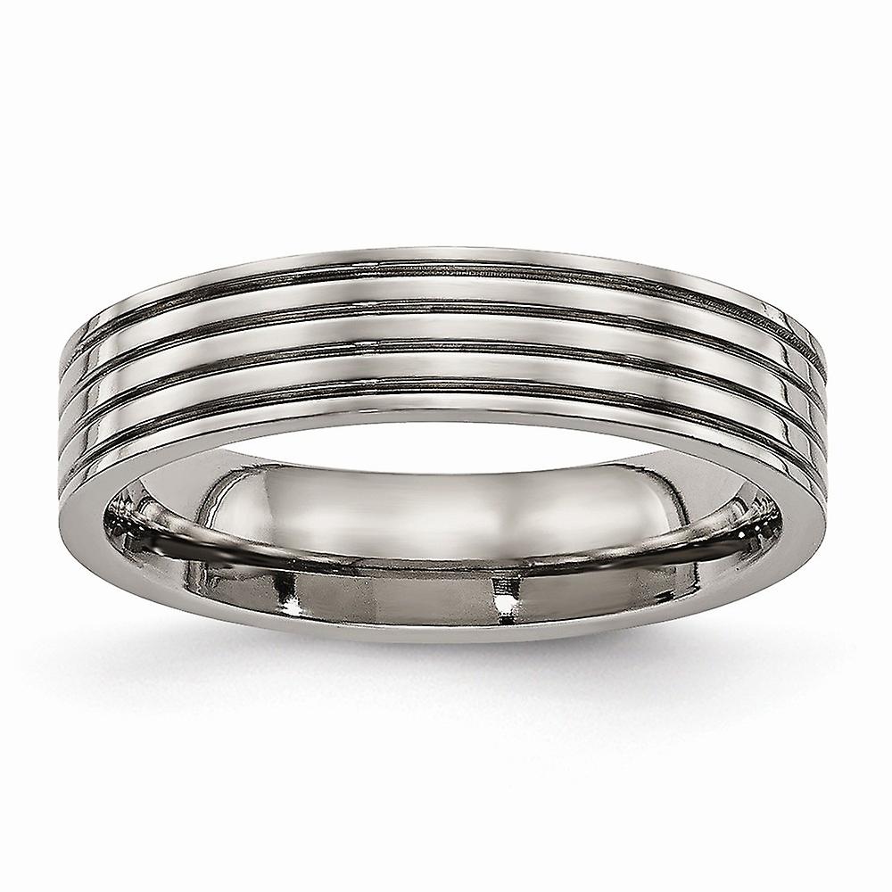 5mm Titanium Polished Grooved Comfort Back Ring Ring for Women - Ring Size: 6 to 13