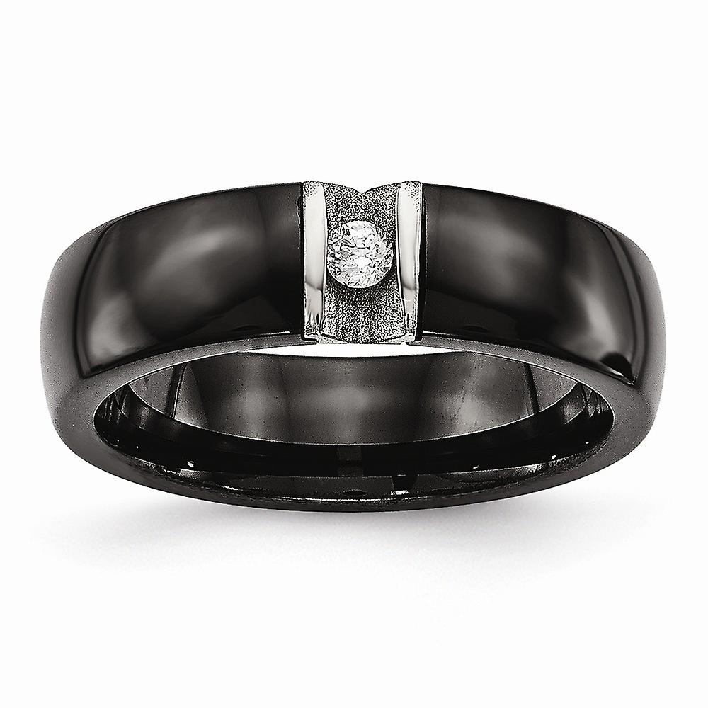 6mm Stainless Steel Laser cut Polished and Laser Cut Black Ceramic Cubic Zirconia Ring Ring for Women - Ring Size: 5 to