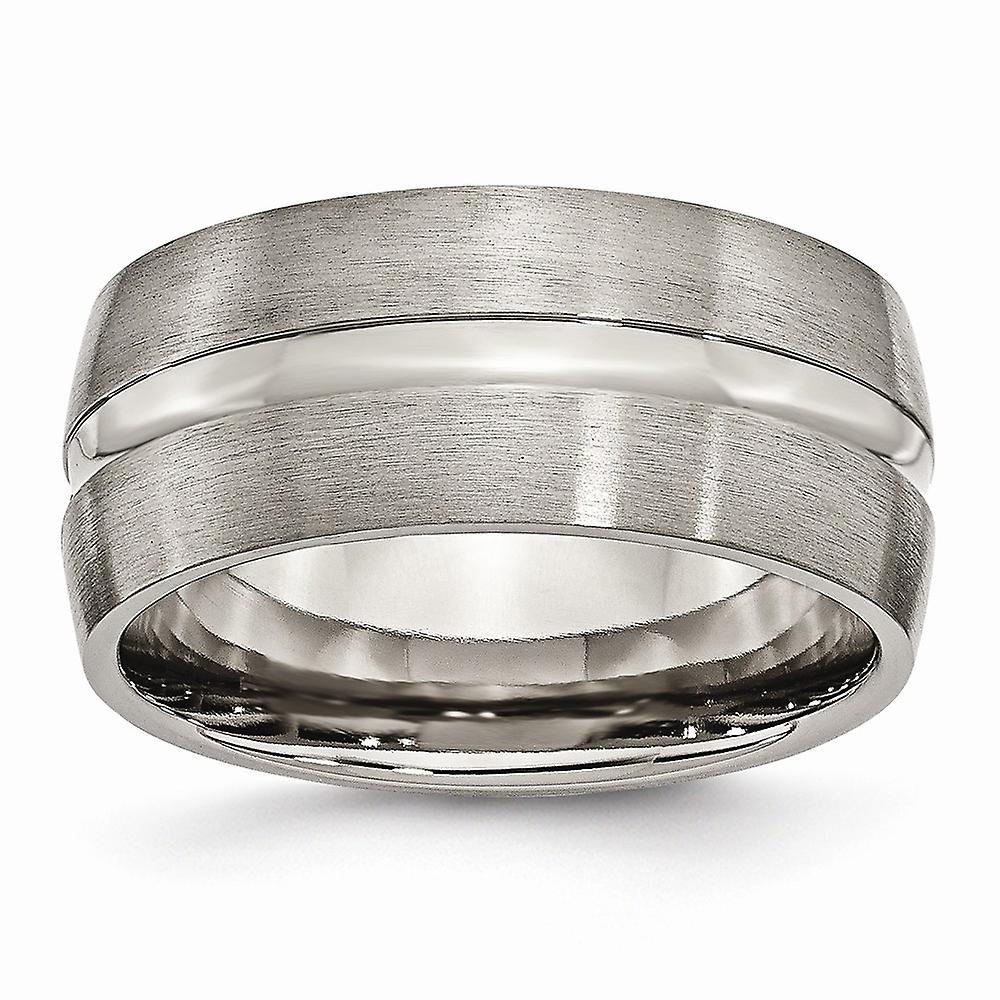 Titanium Brushed Grooved 10mm Satin and Polished Band Ring Ring for Women and Men - Ring Size: 4 to 20